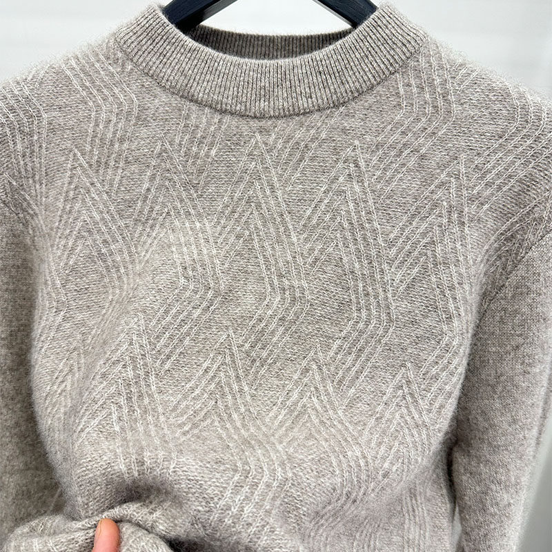 2025新款男士100%纯羊绒加厚毛衣,精选青藏高原本绒山羊绒,源自唐古拉山脉优质牧场,纤维细腻、保暖性极佳。采用传统针织工艺与现代设计融合,推出“金菊”系列,寓意坚韧与高洁。版型修身挺括,加厚处理兼顾轻盈与保暖,适合秋冬日常通勤与休闲穿搭。触感柔软亲肤,不起球、不变形,彰显低调奢华品质。无论是搭配大衣还是单穿,皆显男士儒雅气质。这款针织衫不仅是御寒佳品,更是对自然与匠心的致敬,为追求品质生活的现代男性提供温暖与格调兼具的理想选择。