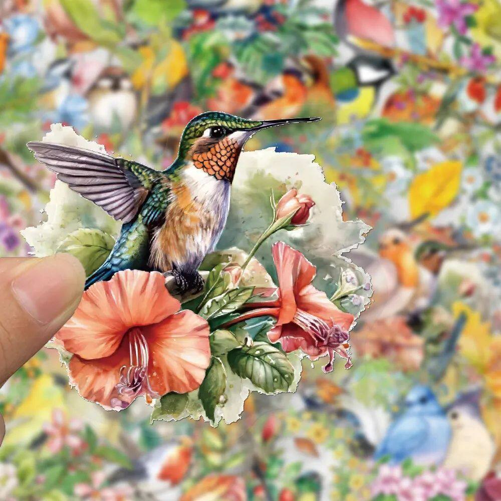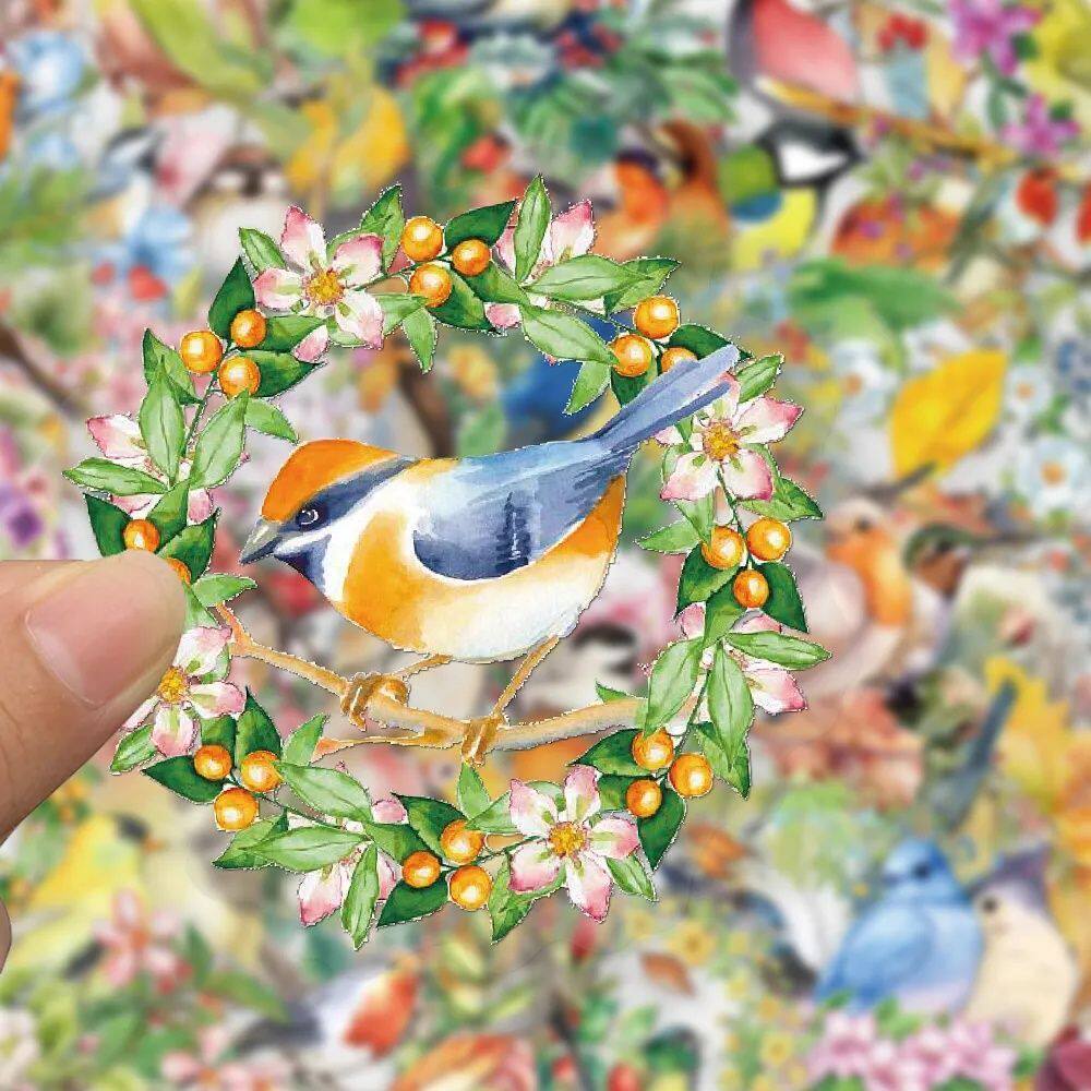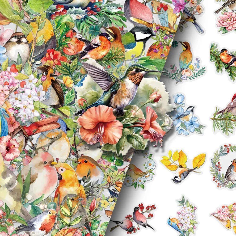 天猫【大图释官方授权】100张水彩小鸟贴纸PET卡通可爱鸟类创意儿童玩具装饰手机玻璃门窗花标签手账素材防水贴画