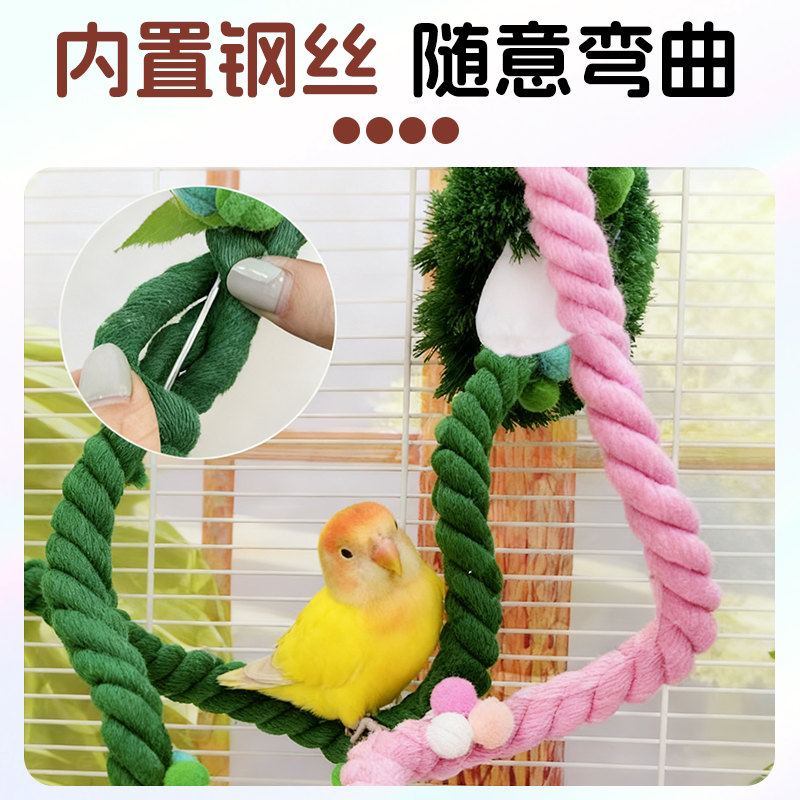 淘鹦鹉玩具鸟秋千彩色棉绳鸟吊环圆环秋千鸟类啃咬栖息玩具鸟笼配件
