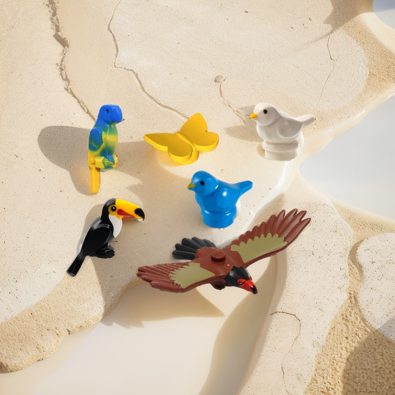 乐高(LEGO)动物鸟类系列拼插积木配件,包含大嘴鸟、犀鸟、老鹰、蝴蝶、鹦鹉等多种生动造型,采用高精度模具与环保ABS材质,色彩鲜艳、细节逼真。每个零件均可灵活拼接,兼容标准乐高系统,激发孩子创造力与动手能力。大嘴鸟夸张喙部、犀鸟独特冠羽、老鹰锐利眼神、蝴蝶绚丽翅膀及鹦鹉斑斓羽毛,均通过模块化设计还原自然特征。适合亲子互动、教育启蒙或收藏展示,既培养空间思维,又普及鸟类知识,是寓教于乐的优质积木产品,深受儿童及成人玩家喜爱。