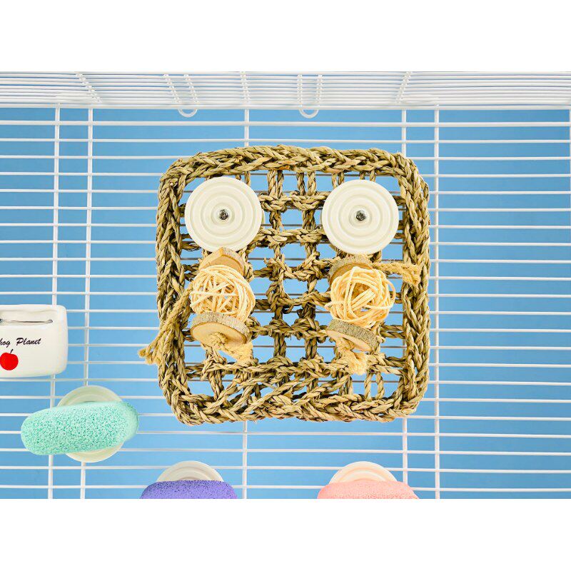 刺星球鹦鹉啃咬攀爬网挂玩具,专为牡丹鹦鹉、虎皮鹦鹉等小型鸟类设计,集娱乐、磨嘴与锻炼于一体。采用天然环保麻绳与无毒木材制作,安全耐咬,有效缓解鸟类啄羽焦虑,满足其天性需求。独特的网状结构搭配彩色木珠、铃铛及可拆卸爬梯,激发探索欲,增强运动量,促进身心健康。悬挂式设计节省笼内空间,同时作为装饰增添趣味。结实耐用,易于安装,是爱鸟日常陪伴的理想伴侣,帮助宠物鸟保持快乐活泼,远离孤独与无聊,提升生活质量。