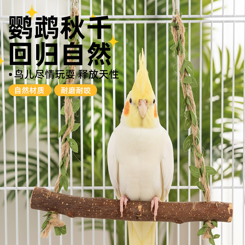 淘森系藤叶鹦鹉秋千原木材质小型鸟类玩具耐磨耐咬互动类悬挂式秋千