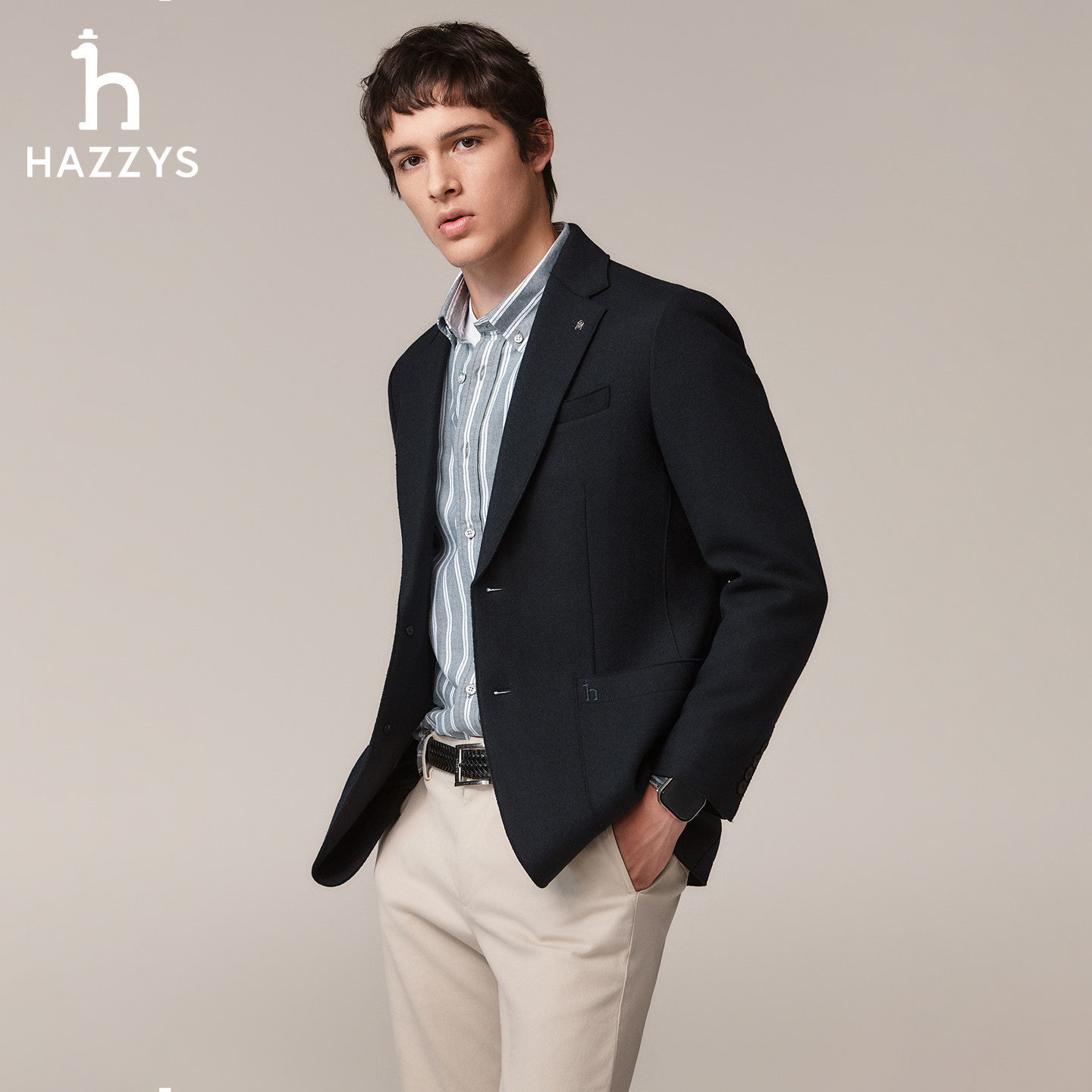天猫Hazzys哈吉斯秋季休闲时尚单西两粒扣西装外套男羊毛西服商务上衣