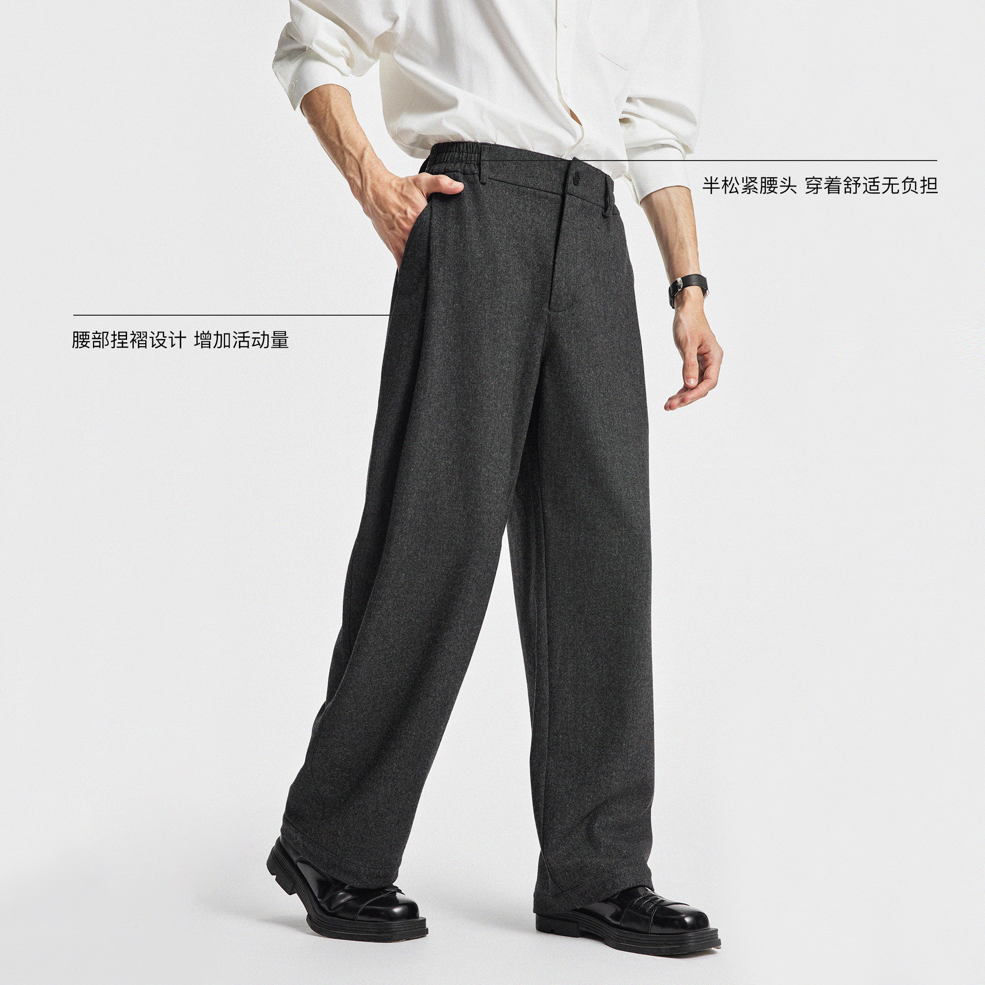 天猫BODYDREAM含羊毛直筒西裤男士2025新款廓形毛呢裤子高级感西装裤