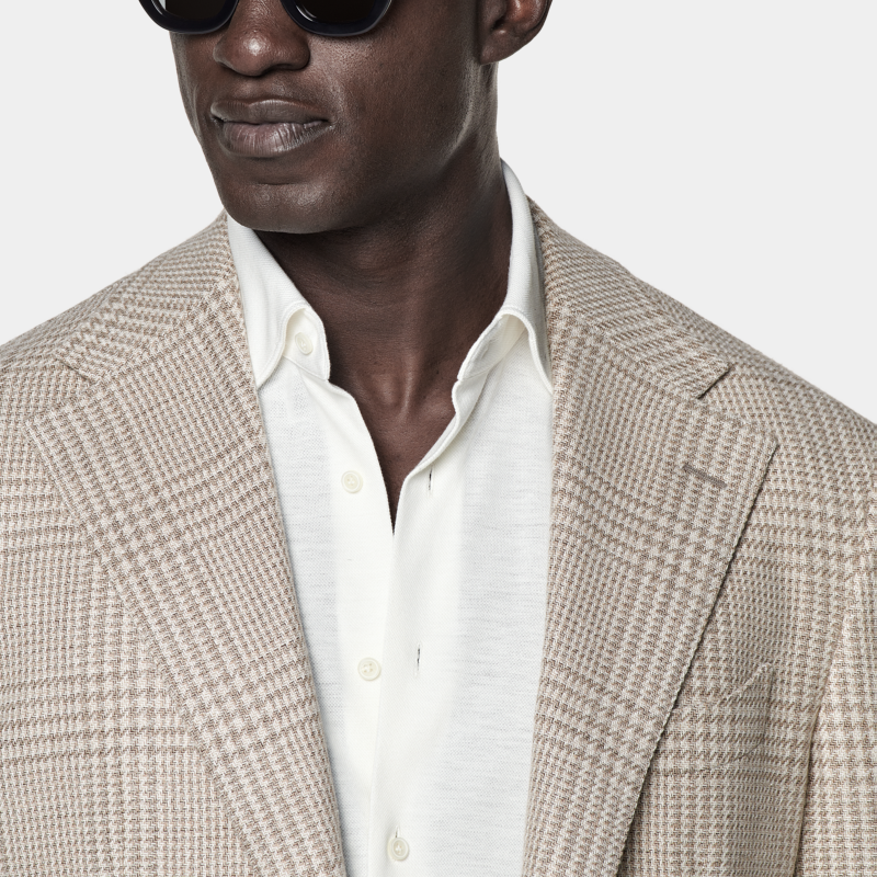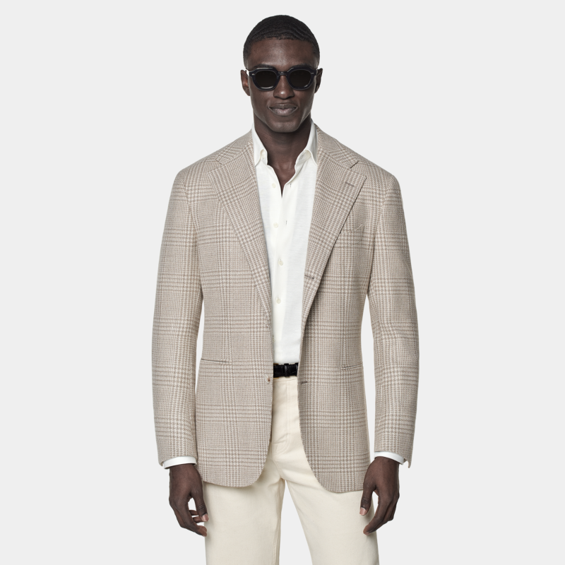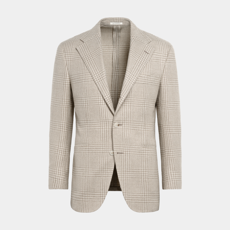 天猫SUITSUPPLY外套砂砾色羊毛混纺男士格纹西装上衣休闲