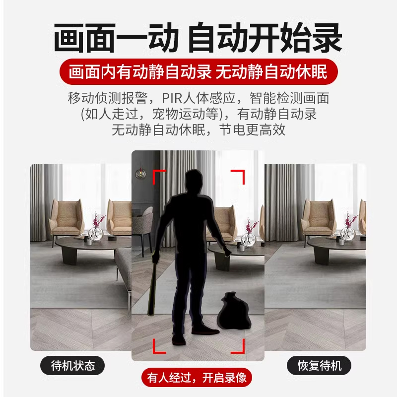 天猫摄像头无线免插电手机远程无需网络高清夜视家用摄影头不插电智能4G充电式监控器录像机wifi室内外家庭记录仪