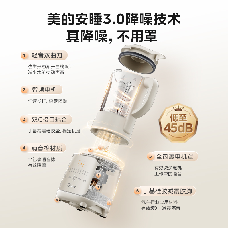 苏泊尔破壁机可拆洗柔低音家用豆浆机加热多功能榨汁机辅食料理机