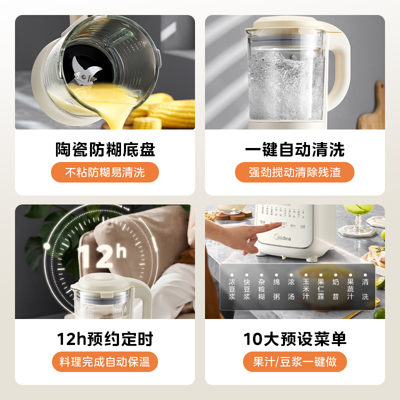 天猫【政府补贴】美的破壁机轻音多功能大容量豆浆机全自动一体榨汁机