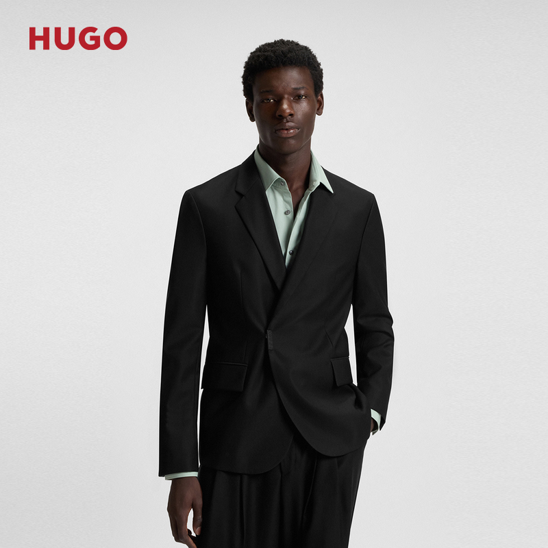 天猫【70%羊毛】HUGO雨果 男士冬款徽标开合设计修身西装外套