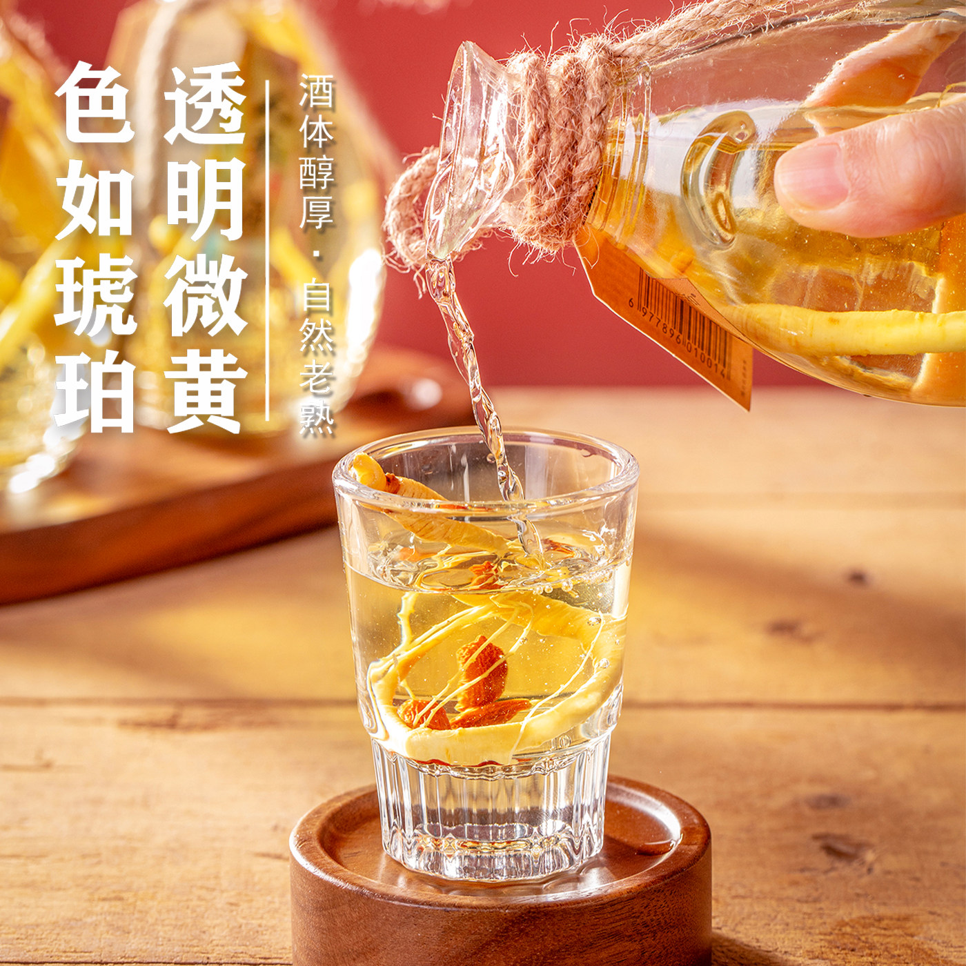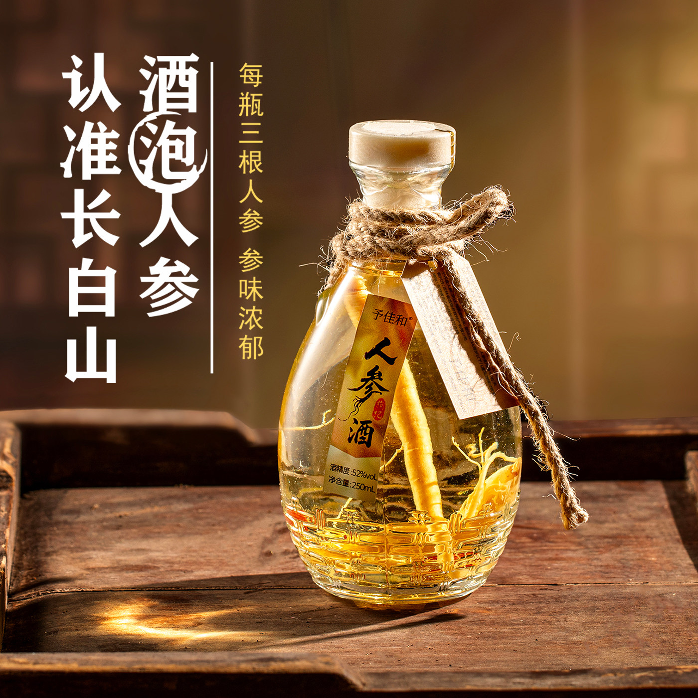 【三根参】人参枸杞酒,精选东北长白山优质高粱纯粮为基酒,融合道地人参、宁夏枸杞等传统养生食材,采用古法酿造,酒体醇厚,香气浓郁。52度适中酒精度,既保留了原粮的甘冽清香,又充分释放人参的滋补精华与枸杞的温润养分,兼具饮用价值与养生功效。小瓶装设计,方便携带,适合日常小酌、馈赠亲友或节庆聚会。源自长白山脉的天然馈赠,传承东北酿酒工艺,每一滴都蕴含大自然的滋养能量,是追求健康品质生活的理想之选。