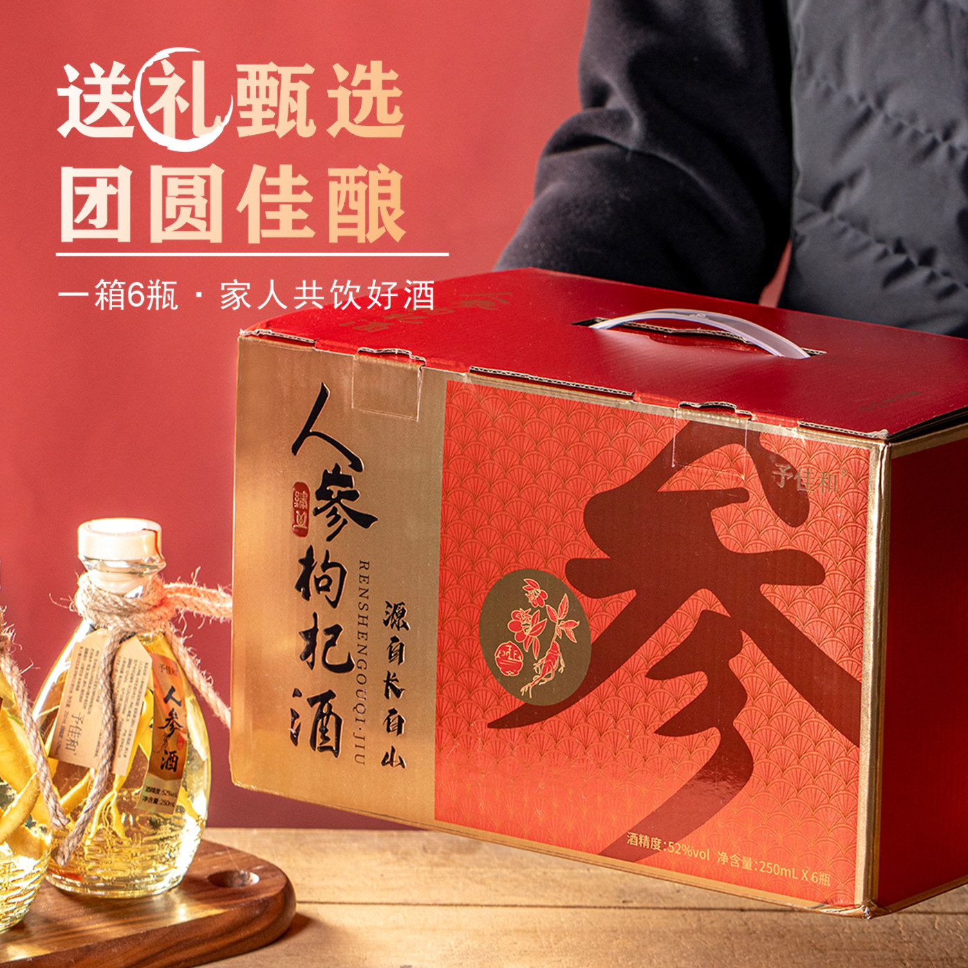 天长白山人参枸杞酒52度三颗参大瓶高粱酒养生滋补酒礼盒年货节送礼