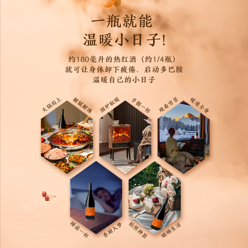 高升中式热红酒养生酒,精选优质红酒为基酒,融合肉桂、橙皮、丁香等传统香料,经匠心慢煮而成,口感温润香甜,酒精度低,特别适合女士饮用。750ml大容量设计,适合新年春节聚会、家庭围炉或闺蜜小酌,加热后饮用更能激发香料芬芳,暖身又暖心。无论是节日助兴,还是夜晚微醺助眠,都是理想之选。无添加防腐剂,天然健康,兼具养生与风味。高升寓意吉祥,是馈赠亲友、自享惬意的佳品,让每一口都充满年味与温情,开启美好夜晚的仪式感。