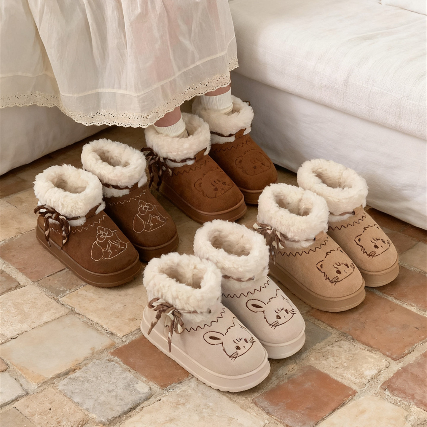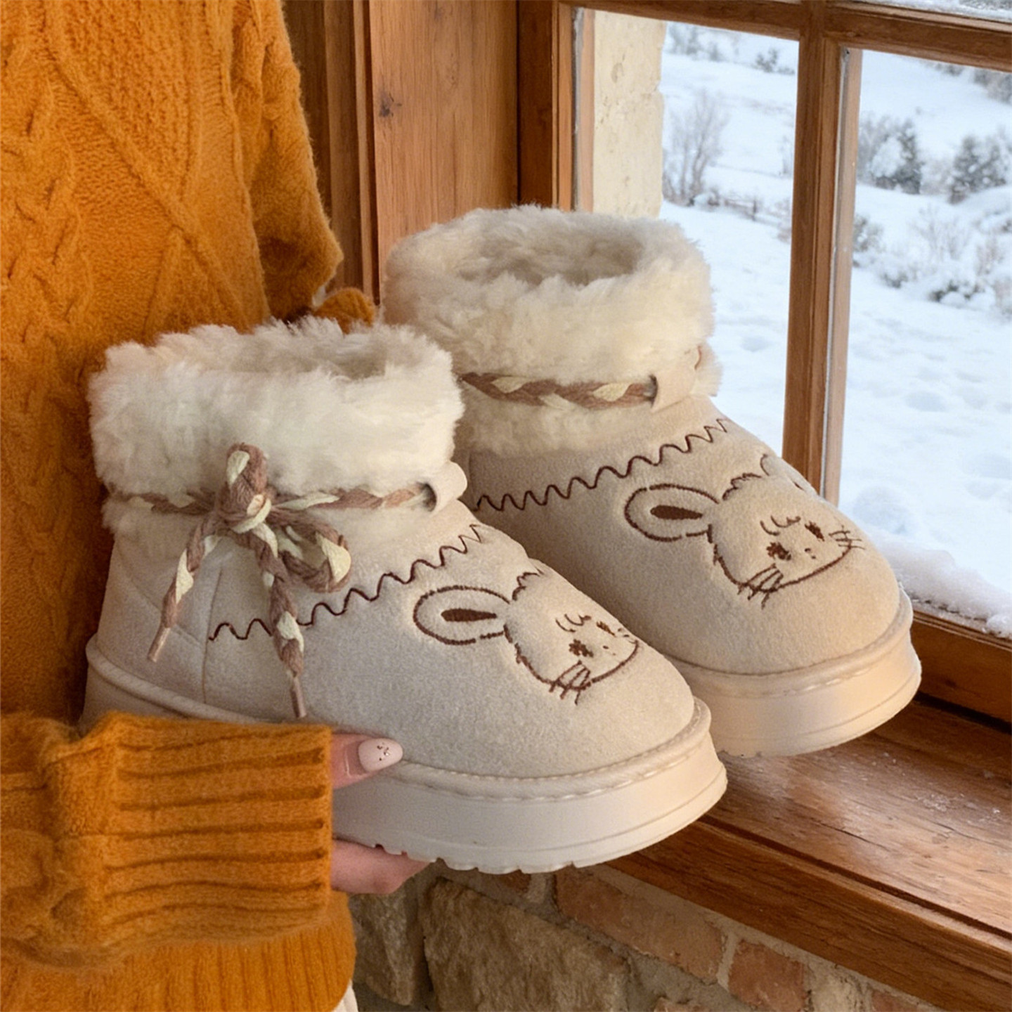 天猫细细条 保暖厚底可爱东北棉靴Mikko联名小猫防滑加绒冬季雪地靴女