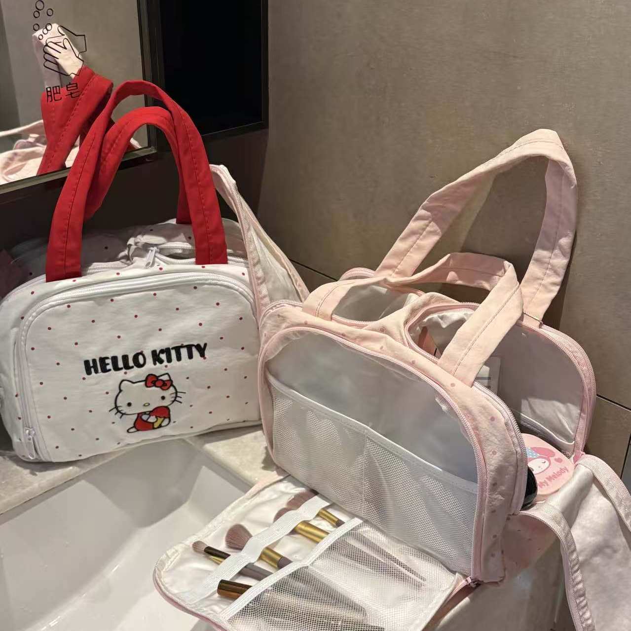 淘宝三丽鸥正版HelloKitty美乐蒂防水化妆包大容量手提分区收纳洗漱包