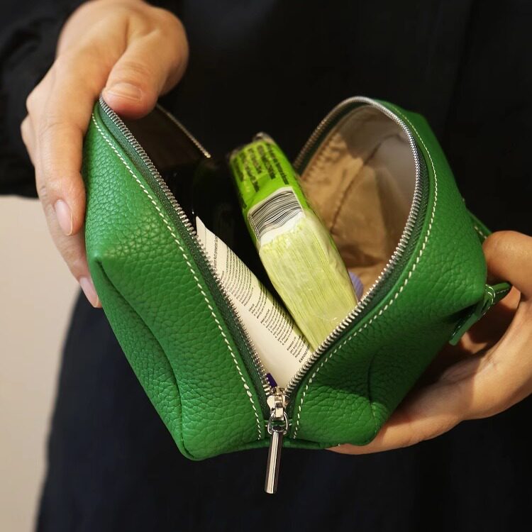 SAINKHO山叩真皮随身化妆包,精选优质头层牛皮打造,质感细腻,耐用环保。小巧便携设计,轻松放入手袋或行李箱,是旅行、通勤的理想伴侣。内部结构合理,分层收纳,可整齐存放口红、粉底、眼影、护肤品及洗漱用品等日常杂物,避免杂乱。精致金属拉链顺滑耐用,开合顺畅。简约时尚外观,兼具实用与美观,适合追求品质生活的都市女性。无论是日常补妆还是短途出行,这款迷你小收纳包都能满足你的收纳需求,让随身物品井然有序,尽显优雅格调。