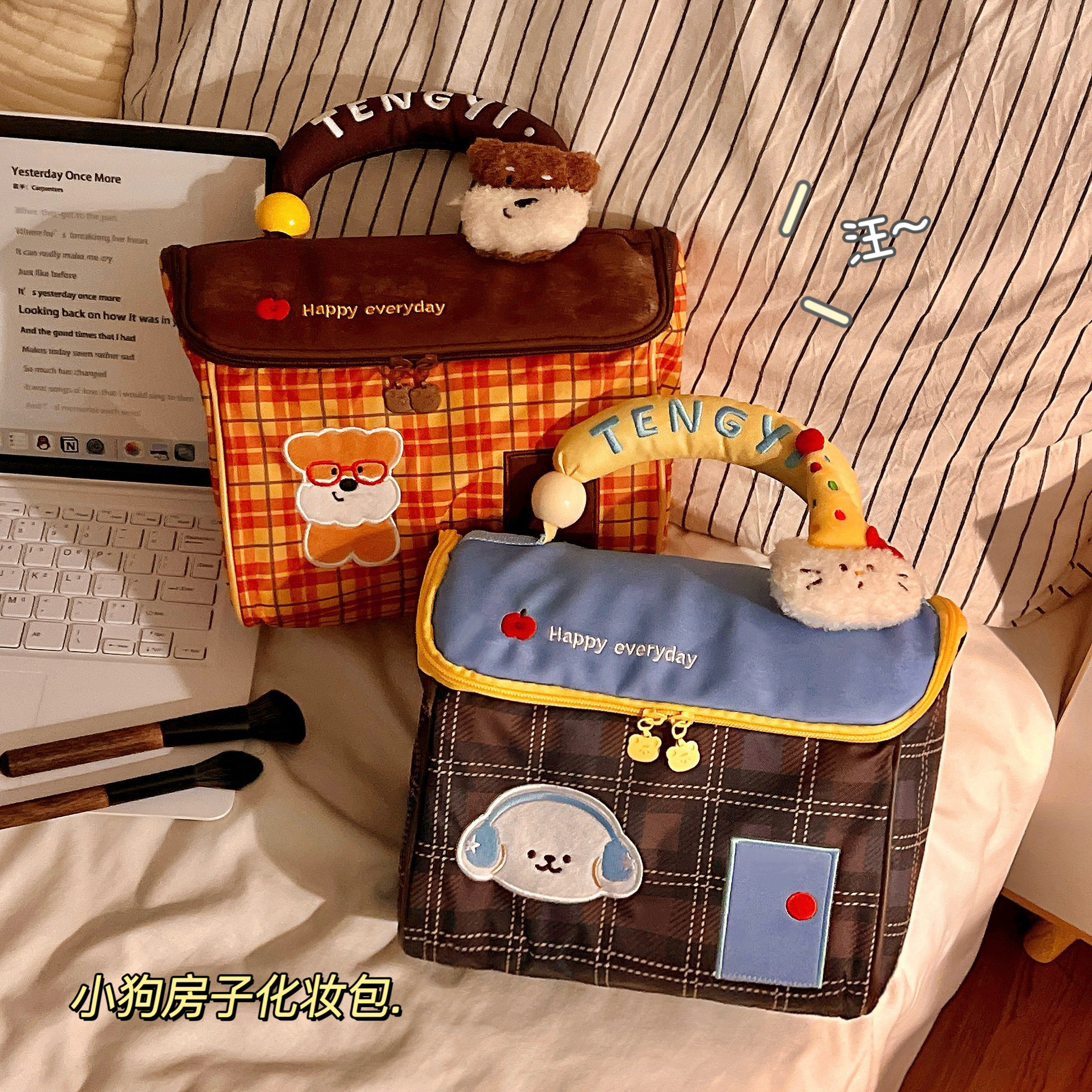 淘可爱多巴胺小屋化妆包大容量多功能杂物收纳袋便携手提旅行洗漱包