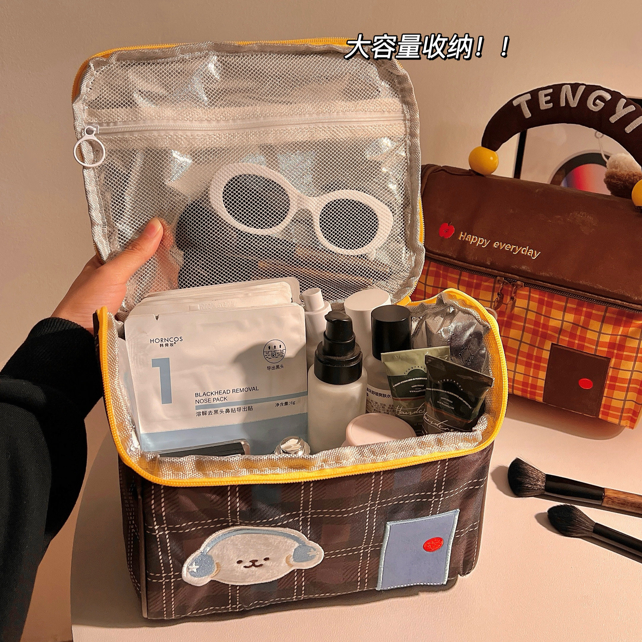 淘卡通四合一化妆包女ins风便携大容量旅行收纳袋护肤品折叠洗漱包