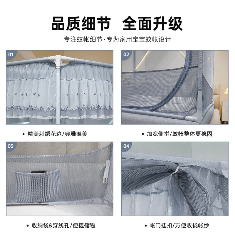 蚊帐家用2025新款床笠款包围宝宝防摔儿童加粗加密加厚卧室蒙古包