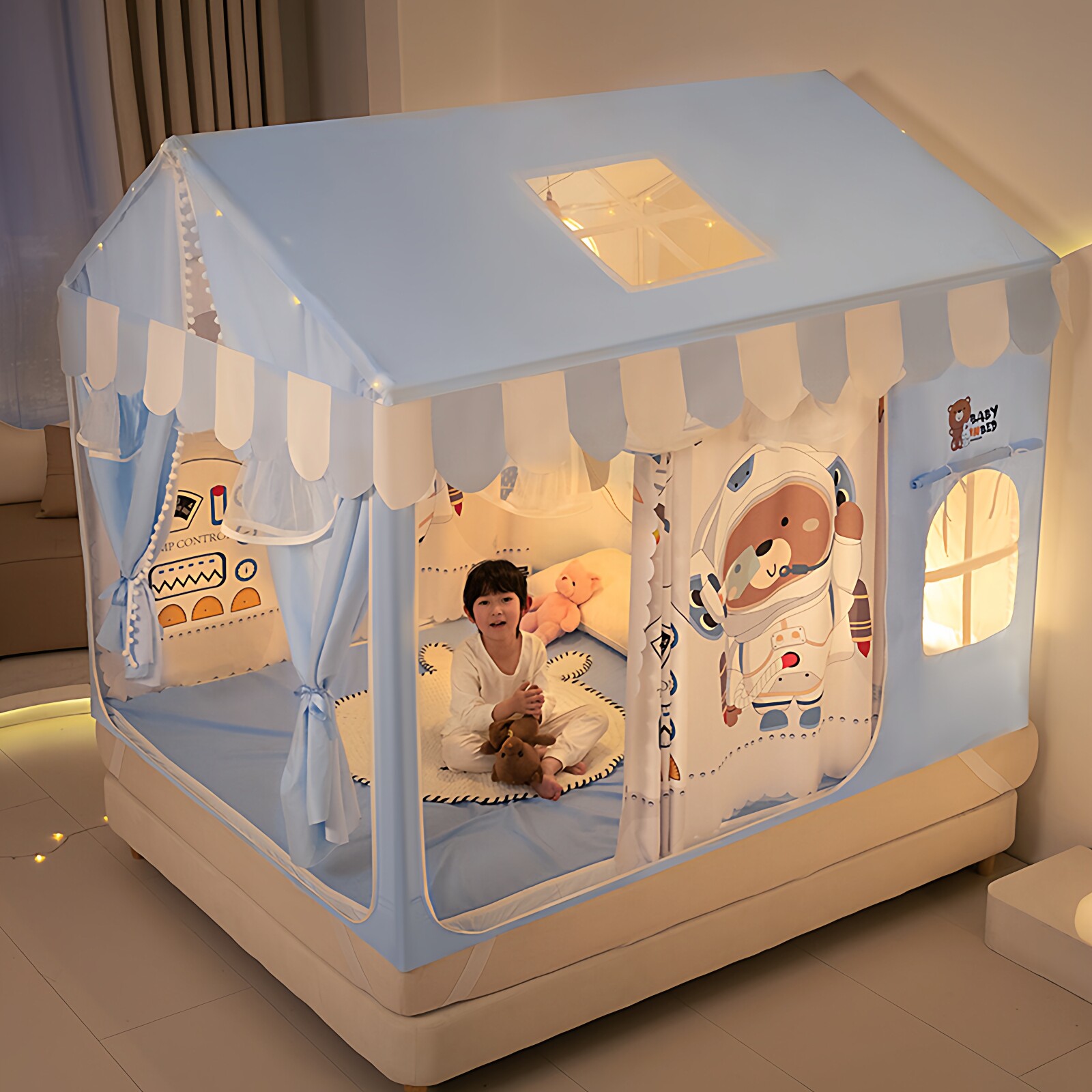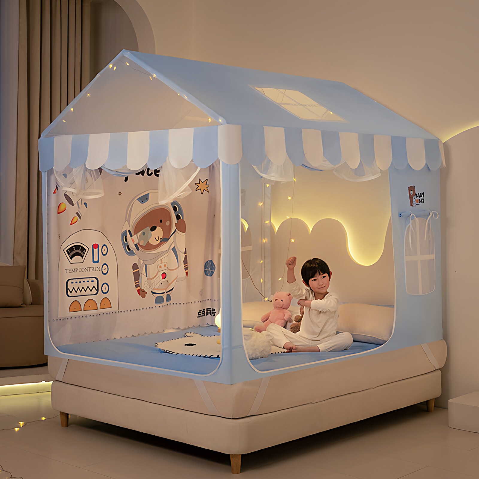 新款A类加密房屋造型儿童防摔蚊帐家用卧室遮光帘3开门全底拉链帐