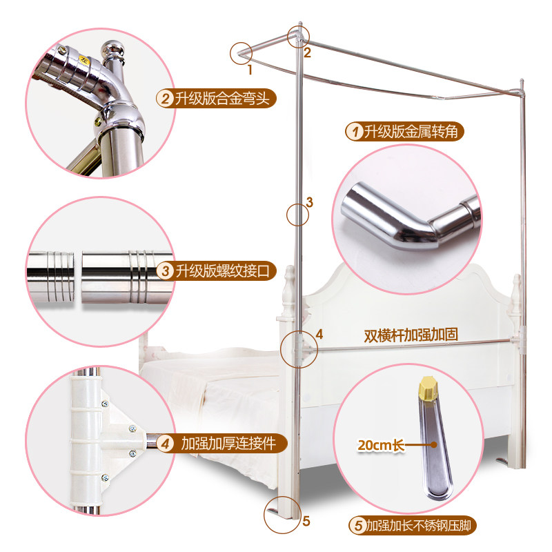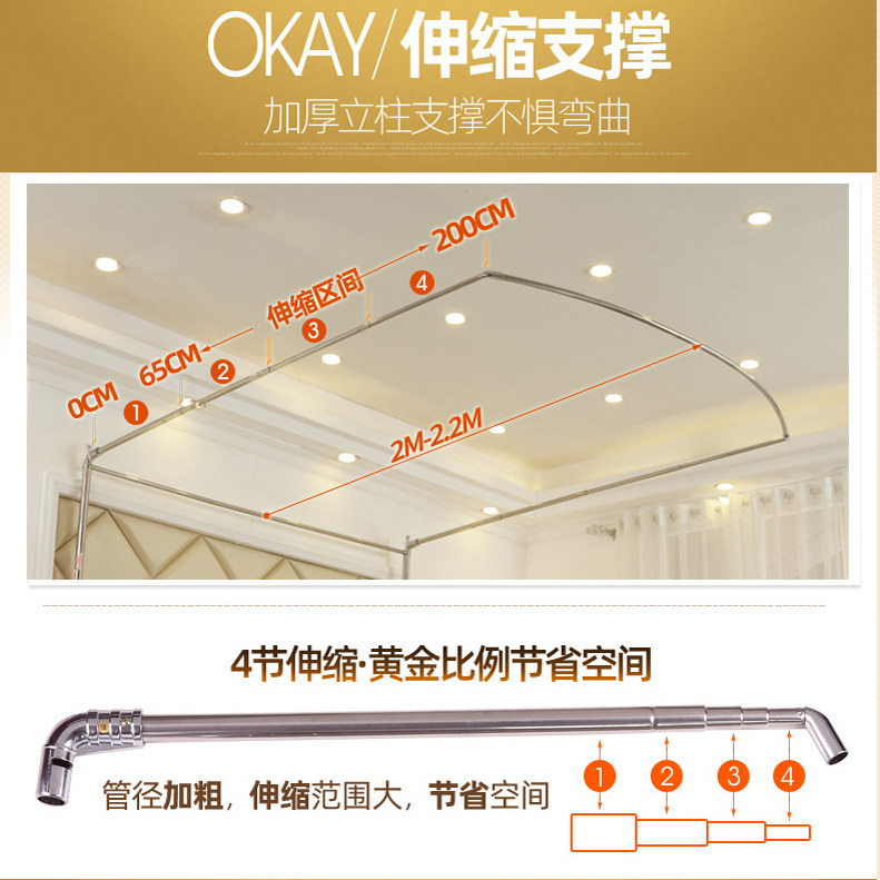 天穿杆不锈钢U型伸缩A类蚊帐支架落地家用高级新款卧室床幔公主床幔