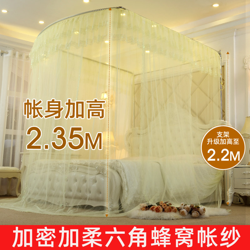 天猫U型伸缩蚊帐三开门落地宫廷床上不锈钢支架1.2/1.5m1.8米双人家用