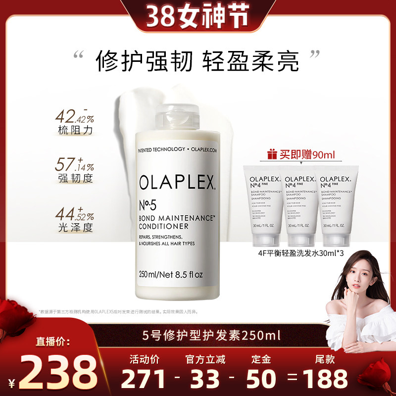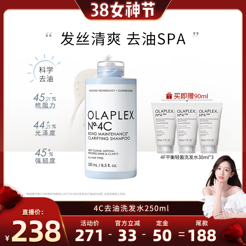 【晁然直播间】倾情推荐OLAPLEX经典修护系列!4号修护洗发水专为受损发质设计,温和清洁同时修复二硫键,强韧发丝、改善毛躁。搭配4C深层净油洗发水,有效调节头皮油脂分泌,清爽不扁塌,适合油性发质日常护理。5号修护护发素深层滋养,提升发丝柔顺度与光泽感,与4号形成完美修护闭环。OLAPLEX凭借独家Bond Building Technology™技术,从根源修复化学损伤,无论是染烫受损还是日常护理,都能带来沙龙级体验。晁然亲测有效,直播间限时优惠,护发爱好者不可错过!立即入手,重拾健康秀发。