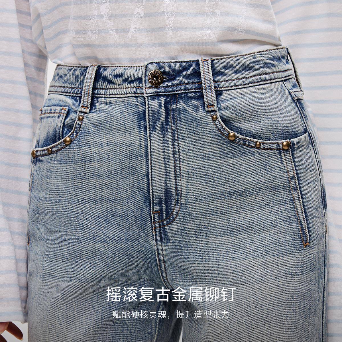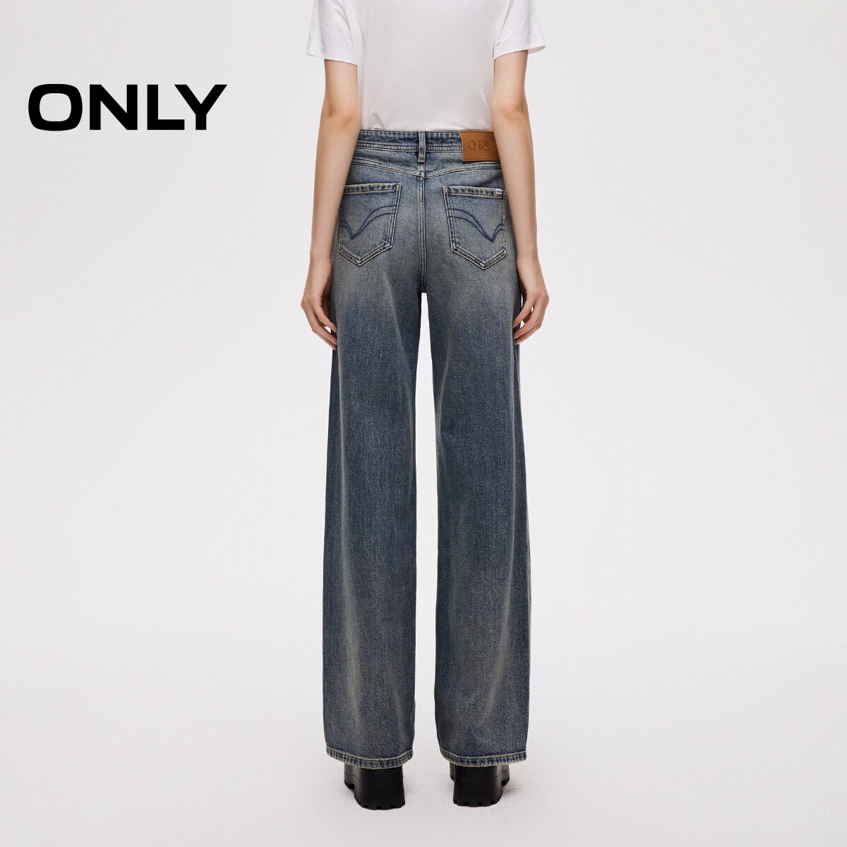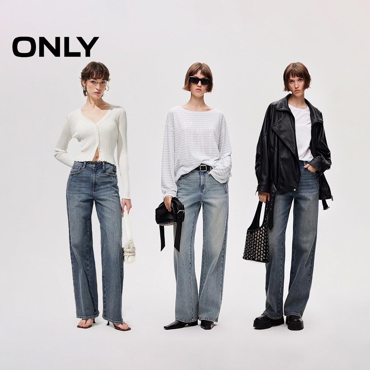 淘宝绫致ONLY2025秋季新款复古金属铆钉高腰直筒长裤牛仔裤女