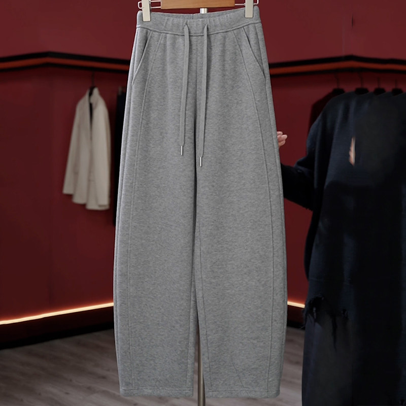 美式灰色运动裤女春秋冬小个子加绒垂感休闲直筒阔腿宽松束脚卫裤