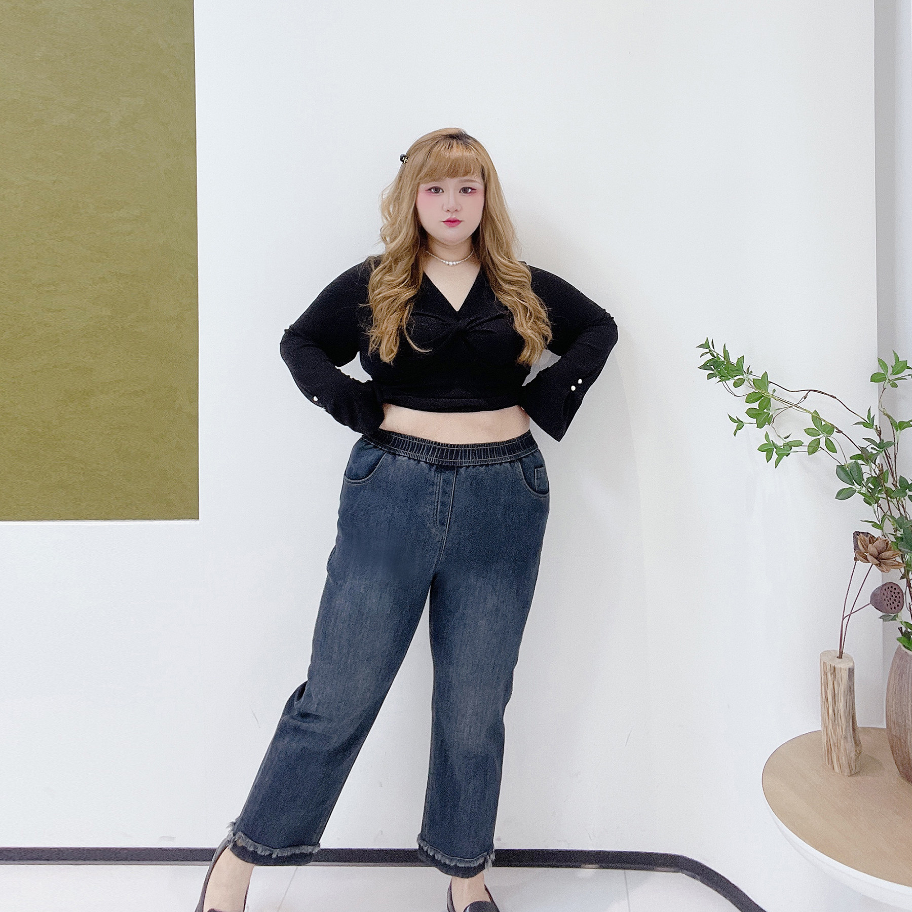 这款300斤高腰遮肚加绒休闲裤,专为大码女性春季穿搭设计,主打舒适与显瘦。采用高腰剪裁,有效收腹遮肚,视觉上拉长腿部线条;直筒版型包容性强,轻松修饰腿型,毛边细节增添时尚感。内里加绒设计,保暖亲肤,适合初春微凉天气。精选弹力牛仔面料,柔软透气,活动自如不紧绷。胖莹莹大码女装专注大码女性穿搭需求,兼顾时尚与实用,让每一位女性都能自信展现魅力。无论是日常通勤还是休闲出行,这条牛仔裤都是理想选择,轻松穿出显瘦又时髦的春日风采。