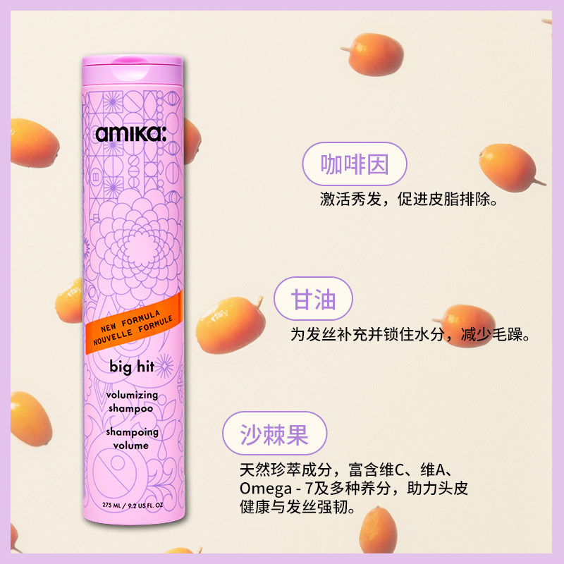 【限定套组】amika蓬松控油丰盈洗发水多效修护改善受损洗发水,专为细软扁塌、易出油及受损发质设计。蕴含天然植物精华与氨基酸复合物,温和清洁同时深层滋养,有效调节头皮油脂分泌,打造清爽蓬松感。独特丰盈配方增强发丝支撑力,令秀发根根立现,告别扁塌。多效修护成分深入毛鳞片,修复烫染损伤,提升发丝强韧度与光泽感。低泡易冲洗,留香持久,带来沙龙级洗护体验。限定套组更附赠同系列护发素,协同增效,持久锁水保湿,令秀发轻盈蓬松、柔顺有型,是追求丰盈质感与健康发质人士的优选之作。