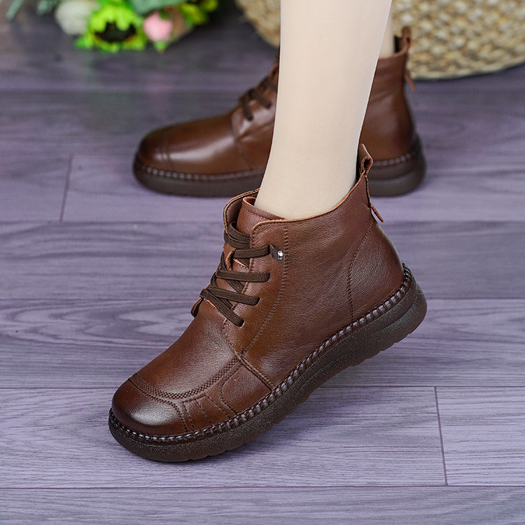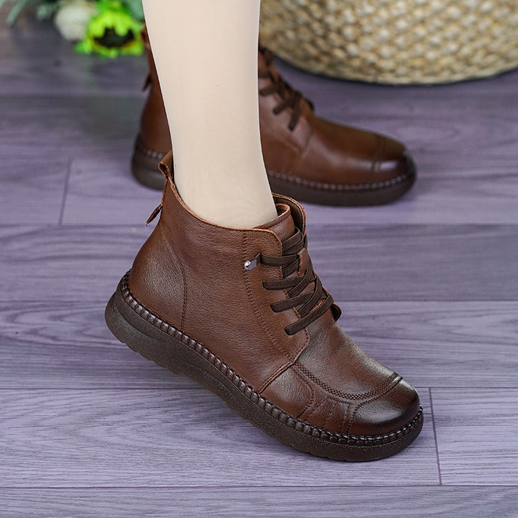 2025秋冬新款真皮平底短靴,专为追求舒适与时尚的女性设计。采用优质软面真皮材质,触感细腻,透气亲肤,搭配内里加绒工艺,保暖性佳,轻松应对寒冷季节。软底设计轻盈减震,久穿不累,行走如履平地,特别适合中老年妈妈日常出行。简约大方的短靴造型,百搭各类裤装与裙装,兼顾实用与美感。轻便易穿脱,贴合脚型,提供全天候舒适体验。无论是逛街、散步还是居家外出,这款真皮加绒棉靴都是秋冬的理想之选,温暖从“足”开始,贴心呵护每一步。