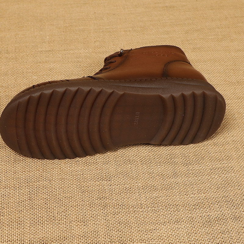 这款冬季女士小短靴专为中老年妈妈设计,采用优质真牛皮材质,复古优雅,柔软亲肤,穿着舒适不磨脚。平底软底设计,贴合脚型,行走轻便稳当,久走不累,特别适合日常休闲或短途出行。内里加绒保暖,有效抵御寒冷,温暖呵护双足。鞋面做工精致,走线均匀,搭配经典圆头造型,既显气质又百搭衣物。无论是搭配裤装还是裙装,都能展现成熟女性的温婉与从容。防滑耐磨鞋底,提升行走安全性。整体设计兼顾美观与实用,是送给妈妈贴心又暖心的冬季好礼,让她在寒风中也能步履轻盈、温暖如春。