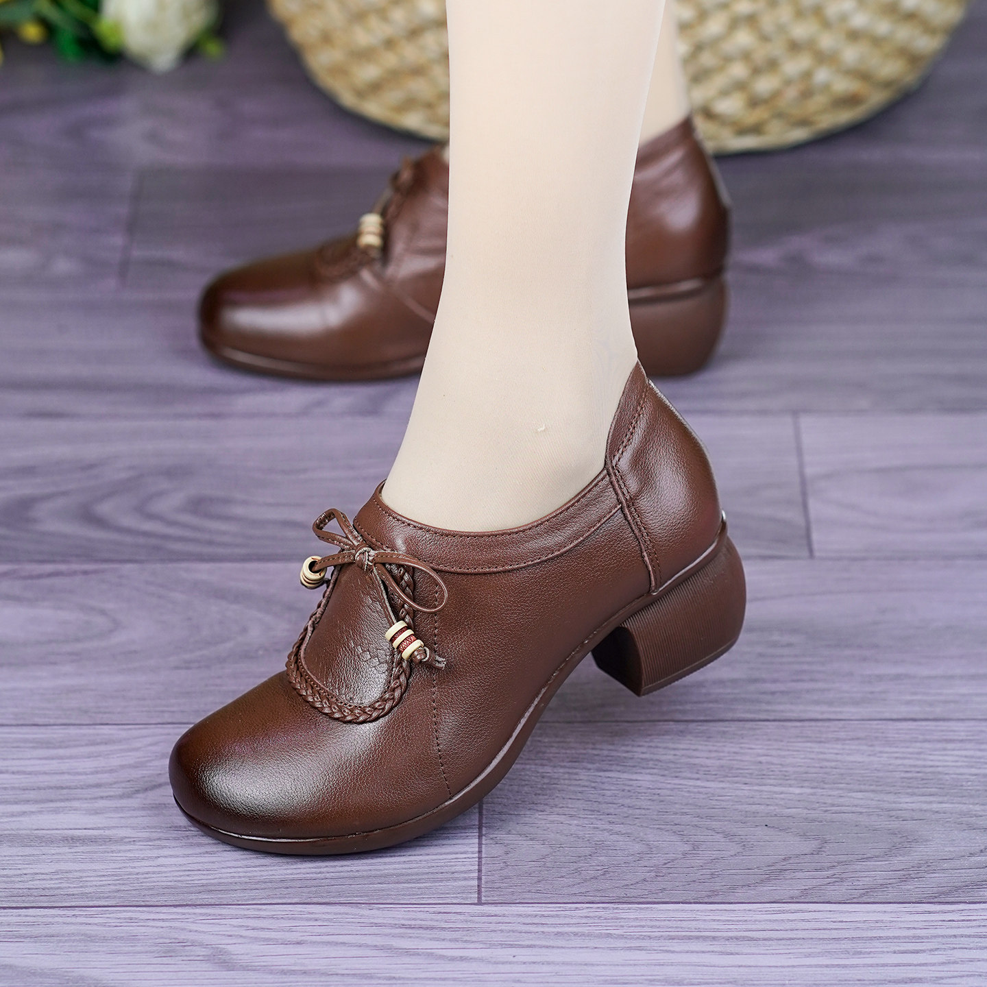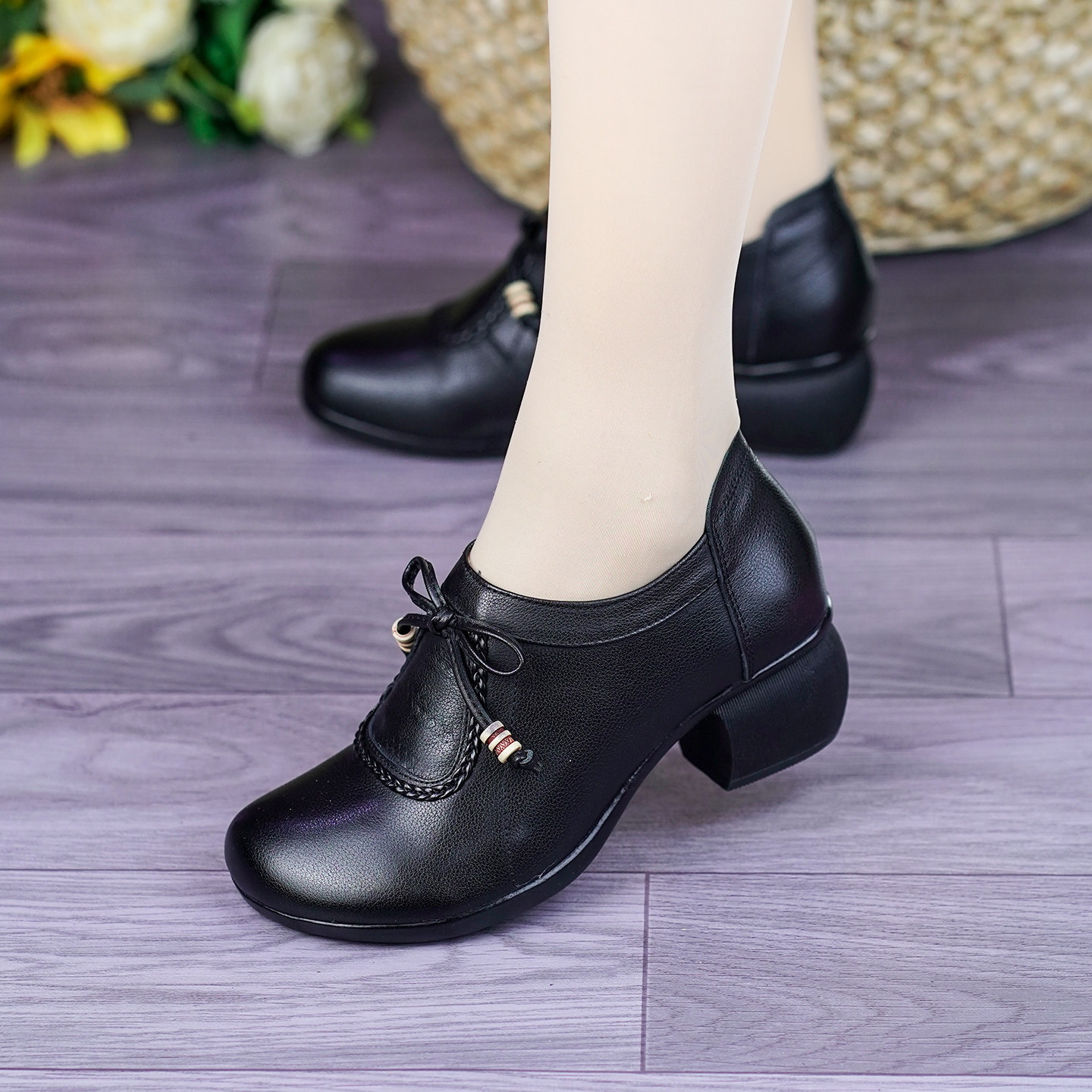 2026年春季新款真皮粗跟深口单鞋,专为追求舒适与优雅的女性设计。采用优质软面真皮材质,亲肤透气,搭配柔软内里与缓震软底,久穿不累,尤其适合跳舞或日常长时间行走。圆头设计宽裕舒适,深口剪裁贴合脚型,穿脱便捷。粗跟稳健防滑,提升气质又不失安全感。融入民族风元素,细节精致,风格独特,既适合妈妈辈日常穿搭,也适合喜爱民族风韵的年轻女性。无论是搭配裙装还是裤装,都能展现温婉知性之美,是春季出行的理想之选。