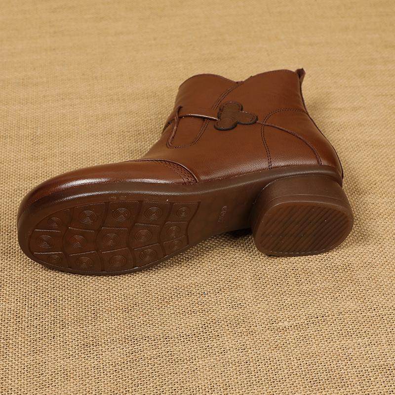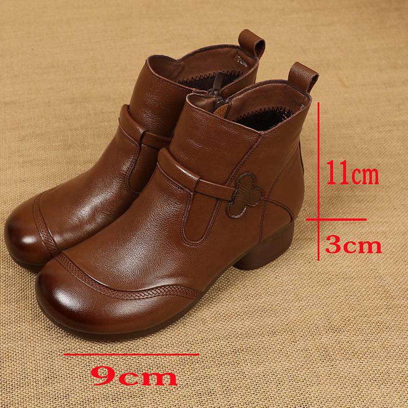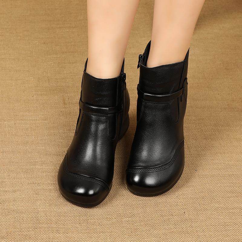 淘宝秋冬新款超软牛筋底真皮女靴子复古休闲低跟短靴女软底牛皮妈妈鞋