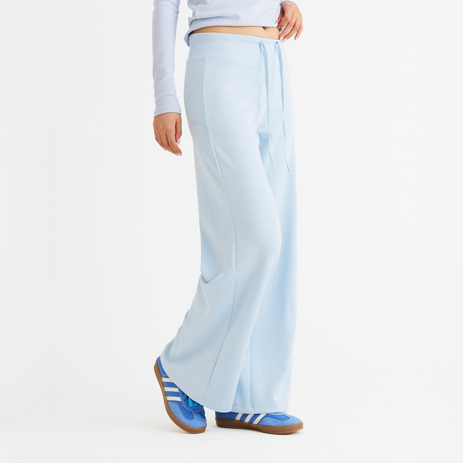 nextday「垂弹顺滑」天丝莫代尔微喇直筒中低腰卫裤,融合舒适与时尚,专为追求自在穿搭的女性设计。采用天丝莫代尔混纺面料,触感柔滑、垂坠感佳,兼具弹力与透气性,久穿不变形。微喇直筒剪裁修饰腿型,中低腰设计贴合腰腹,轻松驾驭多种身形。简约休闲风格,可搭配卫衣、T恤或运动上衣,通勤、居家、出街皆宜。侧边微压条细节提升设计感,低调中彰显品味。轻盈亲肤的穿着体验,让每一步都自在随心,是现代女性衣橱中不可或缺的百搭单品。