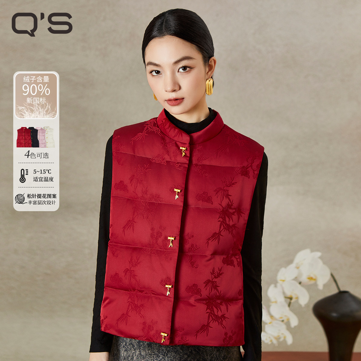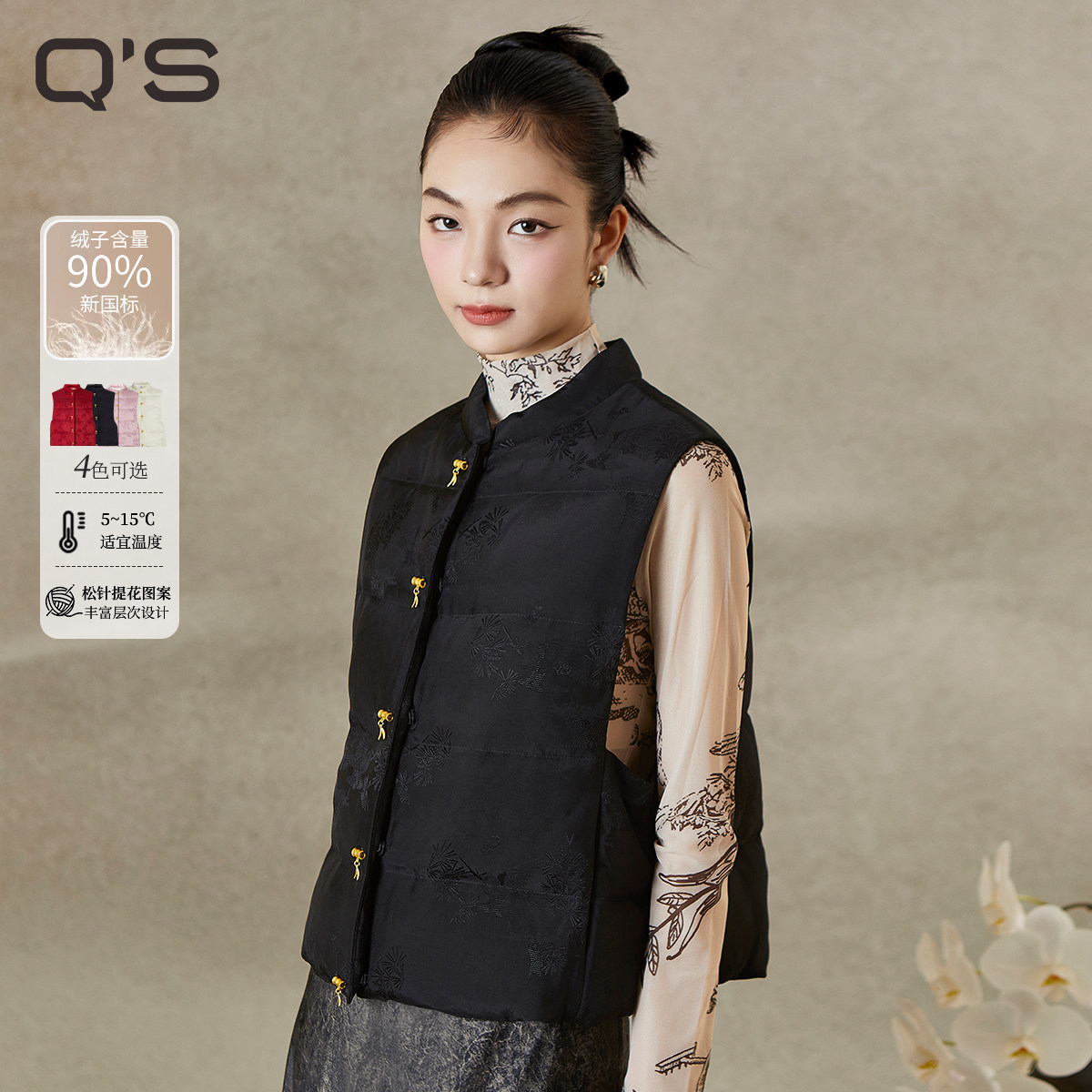 天猫QS秸熙秋冬季新款改良轻国风新中式提花马甲女外套保暖叠穿羽绒服