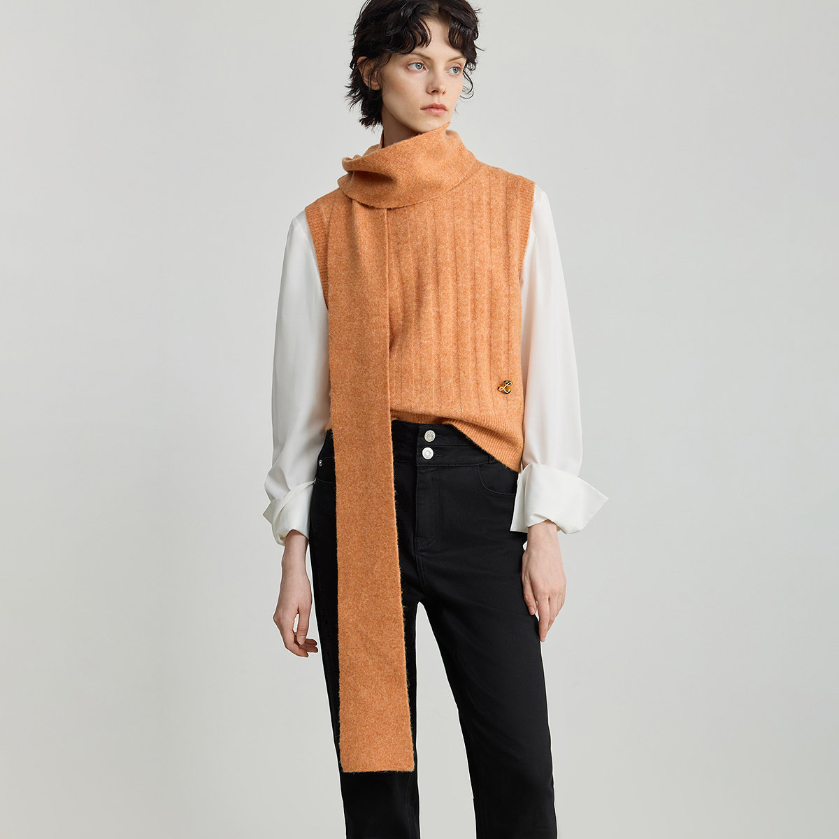 天猫【商场同款】LILY2025新款女装羊毛混纺两穿含围巾针织开衫马甲