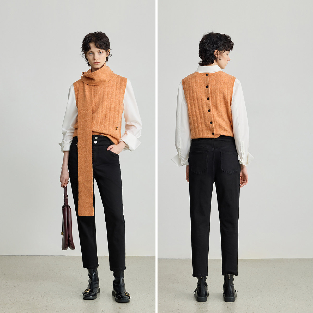 【商场同款】LILY2025新款女装羊毛混纺两穿针织开衫马甲,融合时尚与实穿性,采用高品质羊毛混纺面料,柔软亲肤、保暖透气。独特两穿设计,既可作开衫外搭,亦可反穿为简约马甲,轻松应对多变穿搭场景。搭配同色系针织围巾,造型感升级,尽显优雅知性气质。利落剪裁贴合身形,不挑身材,适合通勤、休闲等多种场合。细节处精致走线,彰显品牌工艺品质。商场同款设计,性价比出众,是2025秋冬衣橱的必备单品,轻松打造都市女性的高级质感穿搭。