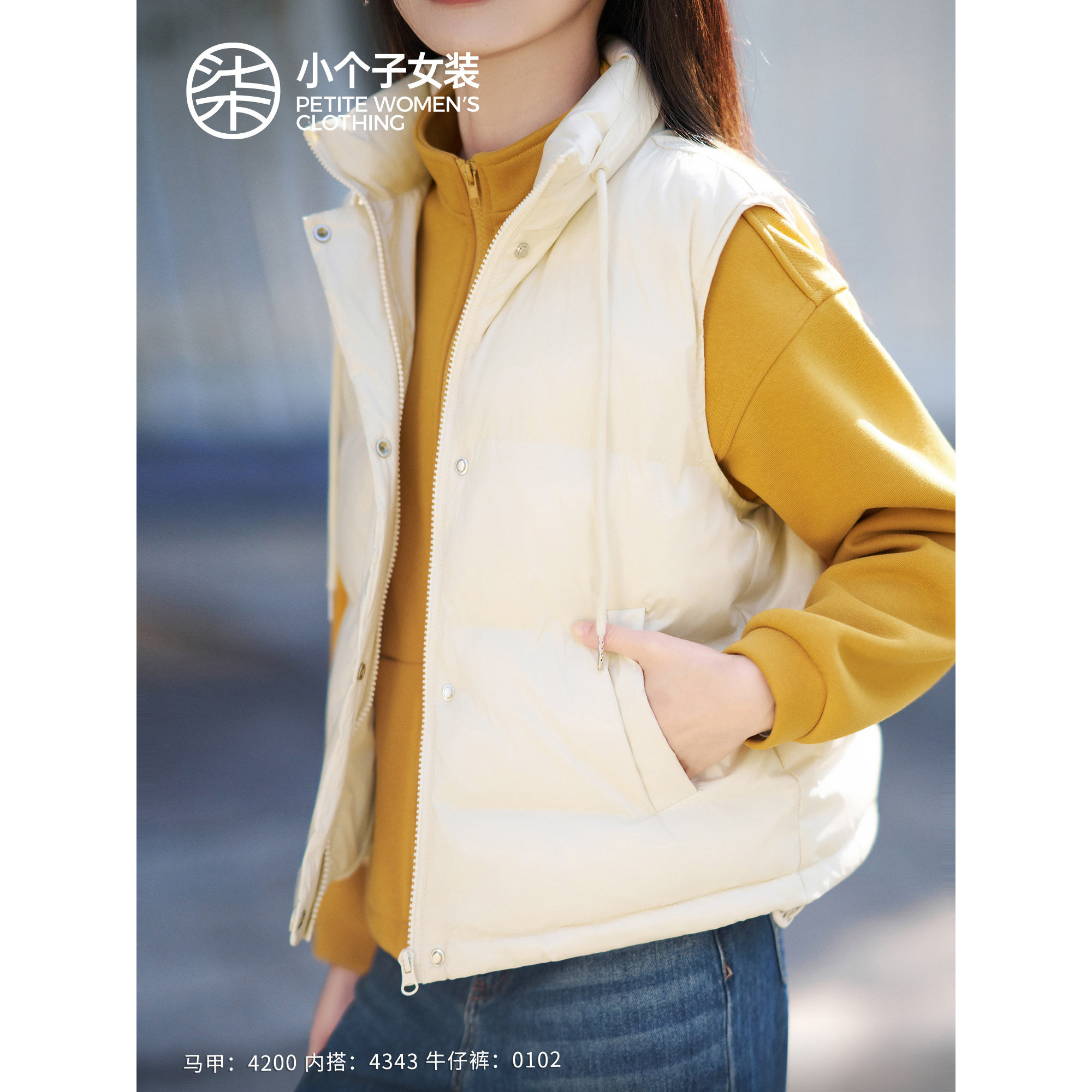 天猫柒量一裁小个子冬季休闲马甲新款上衣好看女厚背心马甲4200