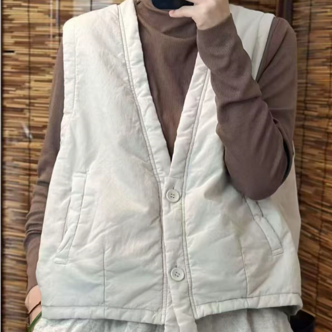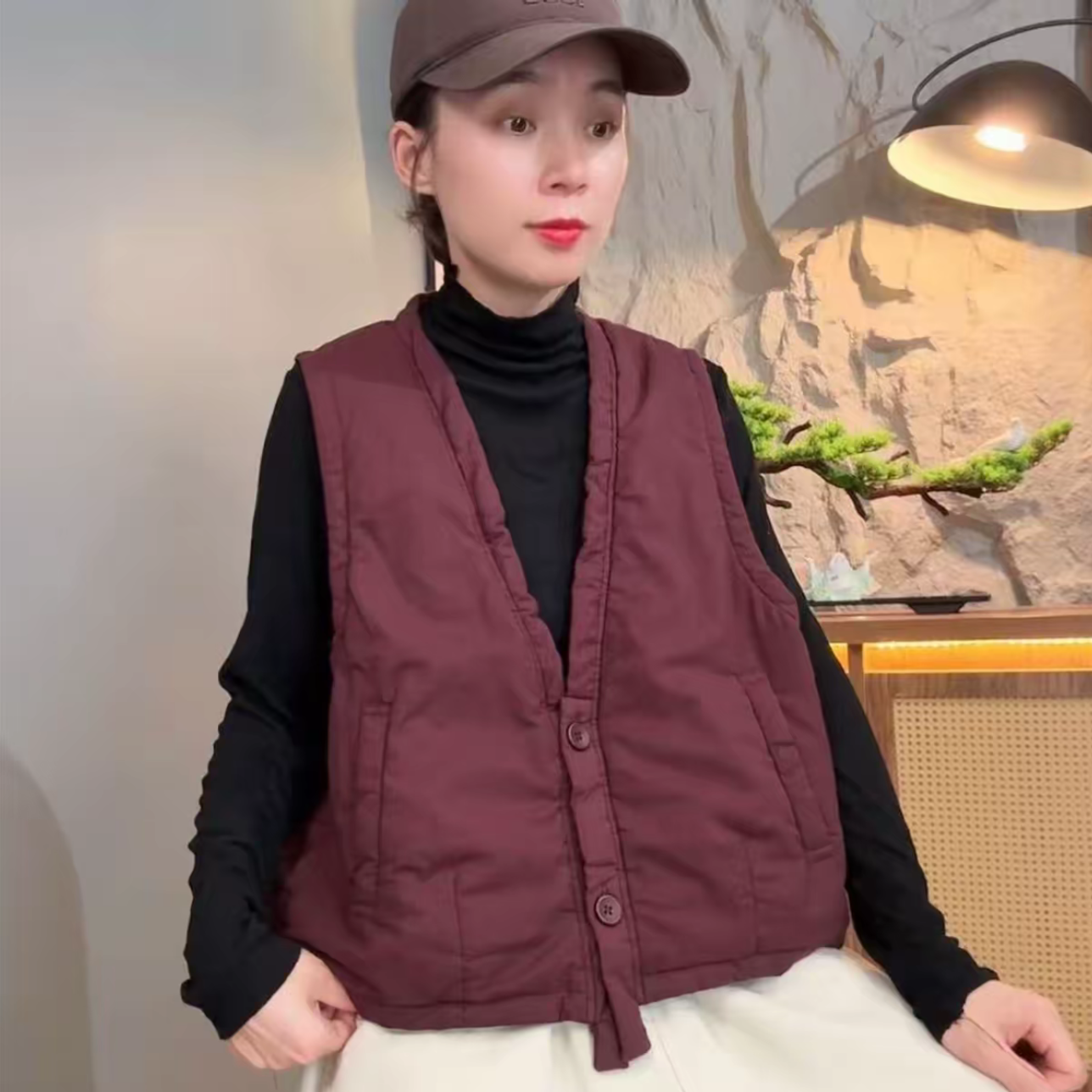 2025秋季新款文艺复古休闲百搭简约风纯色夹薄棉系扣V领气质马甲,以极简设计诠释优雅格调。采用高品质夹薄棉面料,轻盈保暖,适合初秋微凉时节。经典V领剪裁拉长颈部线条,凸显知性气质;前襟系扣设计方便穿脱,兼具实用与美感。纯色基调百搭易衬,可内搭衬衫、针织衫或外披风衣,轻松打造文艺复古或通勤休闲造型。宽松版型包容性强,舒适自在,细节处彰显匠心工艺。无论是漫步街头还是日常办公,这款马甲都能为你增添一抹低调而高级的时尚韵味,是衣橱中不可或缺的百搭单品。
