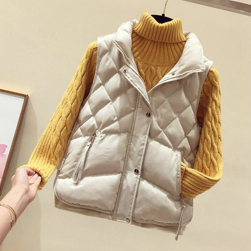 2023秋冬新款百搭时尚立领羽绒棉马甲,专为追求舒适与潮流的女性设计。采用宽松版型搭配经典菱形格绗缝工艺,既保暖又显瘦,立体有型。立领设计有效防风御寒,同时提升整体造型感。内里填充优质羽绒棉,轻盈蓬松,锁温不臃肿。多口袋实用设计,兼顾美观与功能性。可单穿、叠穿,轻松搭配毛衣、卫衣或大衣,打造休闲、通勤、出游等多种风格。无论是日常出行还是户外活动,这款马甲都是秋冬衣橱的必备单品,兼具时尚感与实用性,轻松穿出高级感。