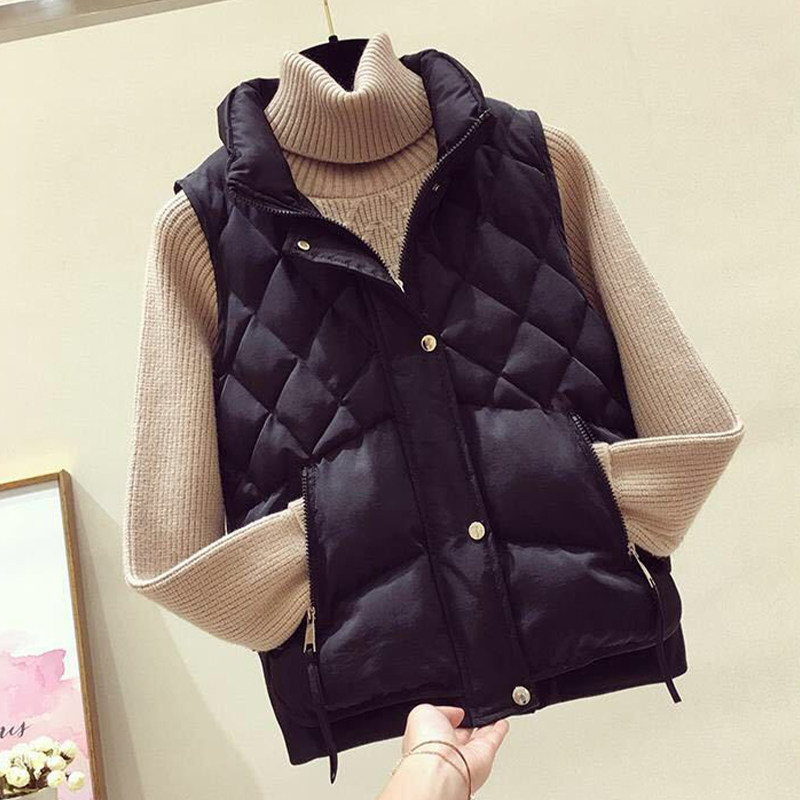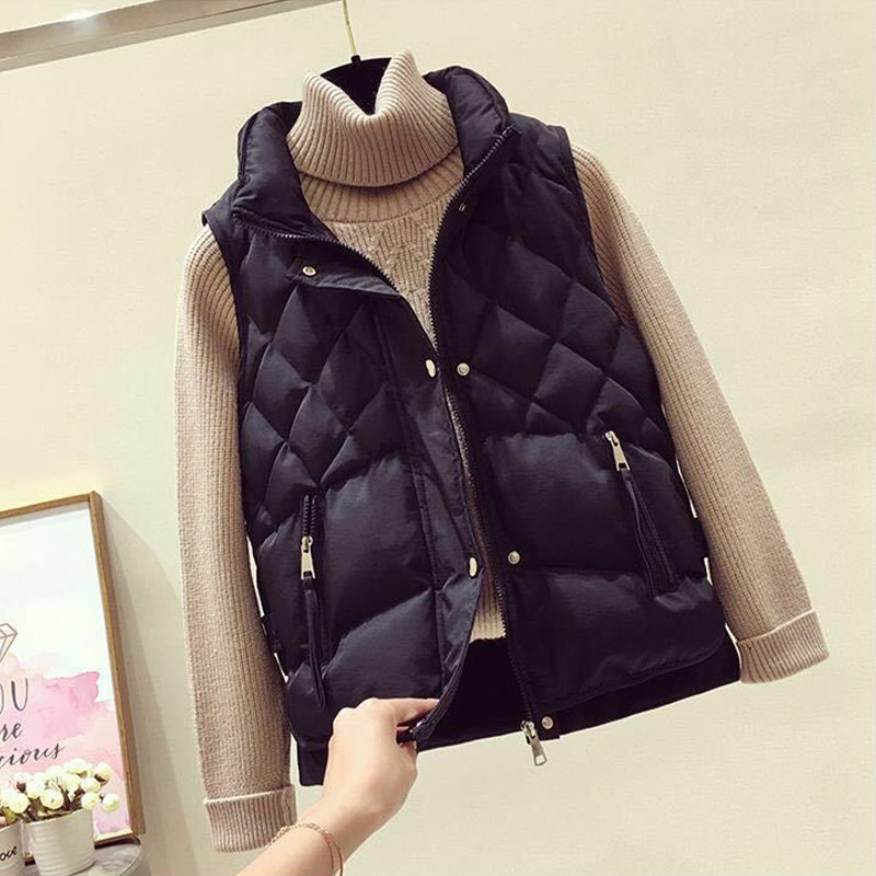 天猫百搭时尚立领羽绒棉马甲女2023秋冬款宽松菱形格设计休闲马夹上衣