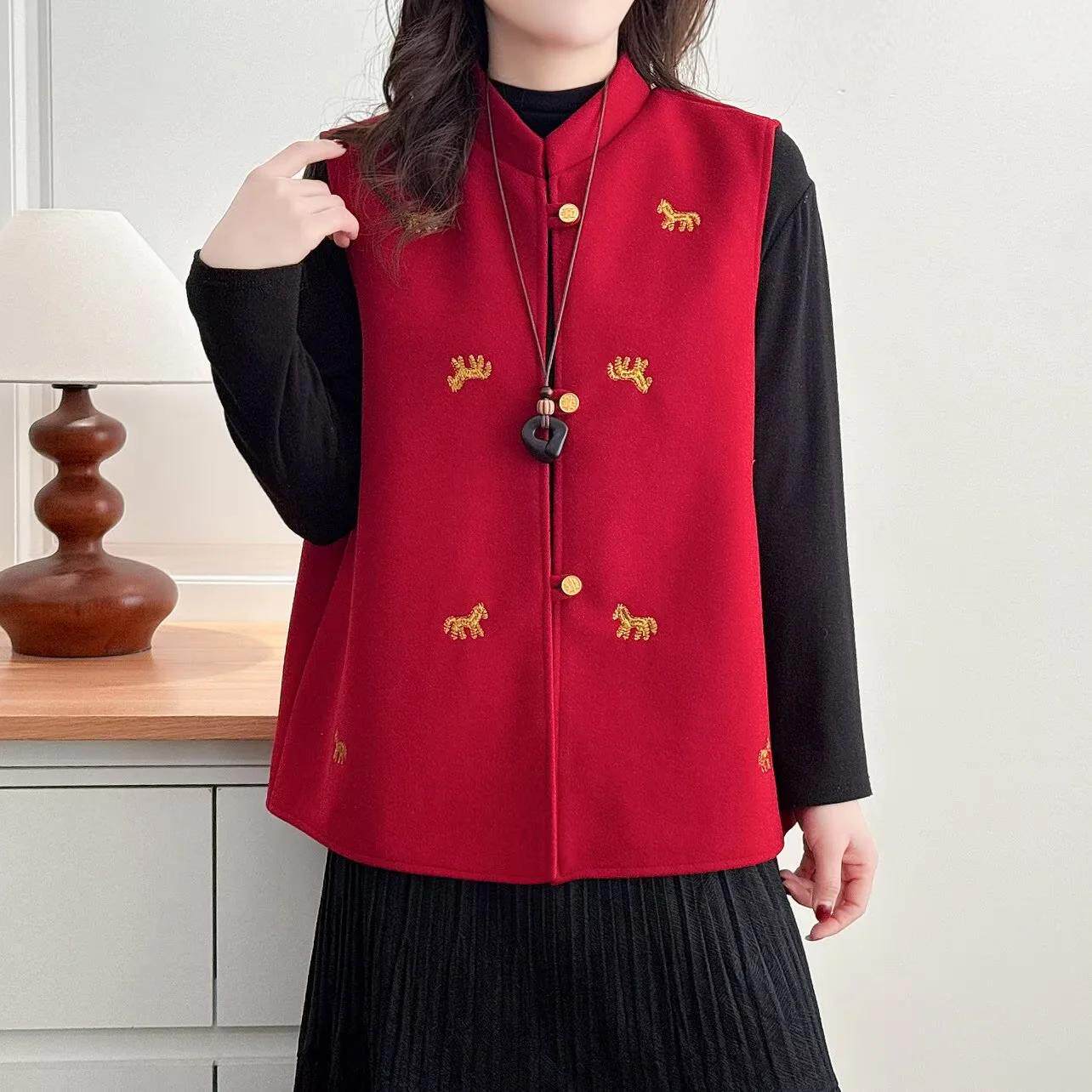 淘宝胖mm2026女装春装坎肩小马刺绣马甲大码国风本命年立领中年马夹女