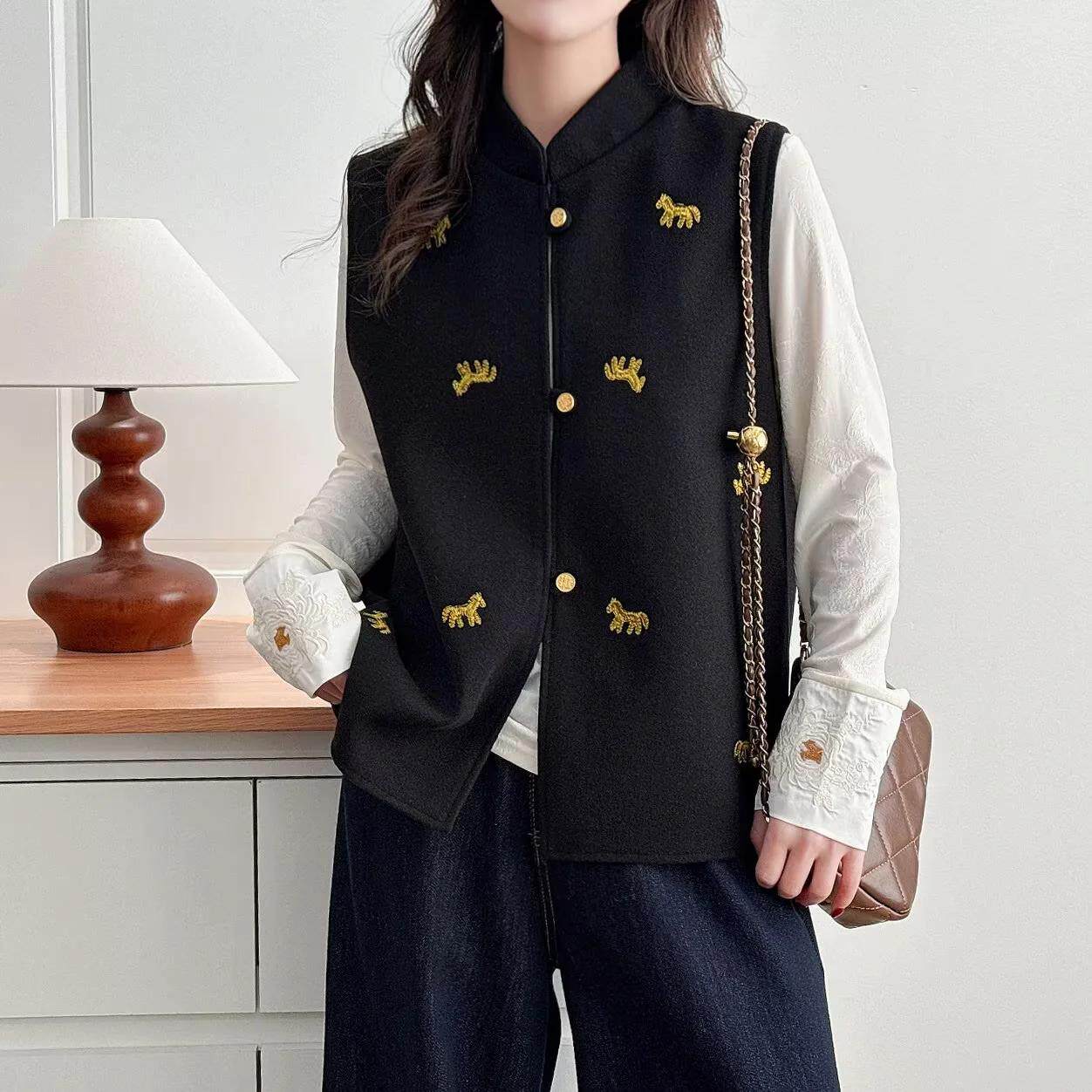 淘高端定制重工刺绣国风马甲背心女高级感无袖坎肩上衣潮设计感轻奢