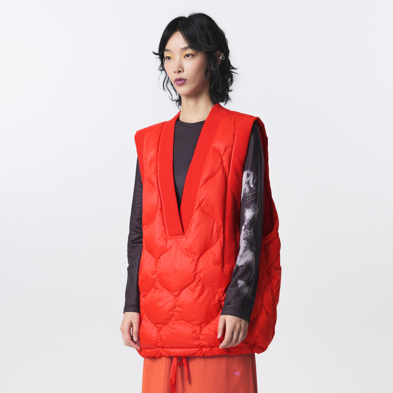 天猫【商场同款】MOVEUP幻走2023秋季新款 大V领设计师中长款棉马夹女