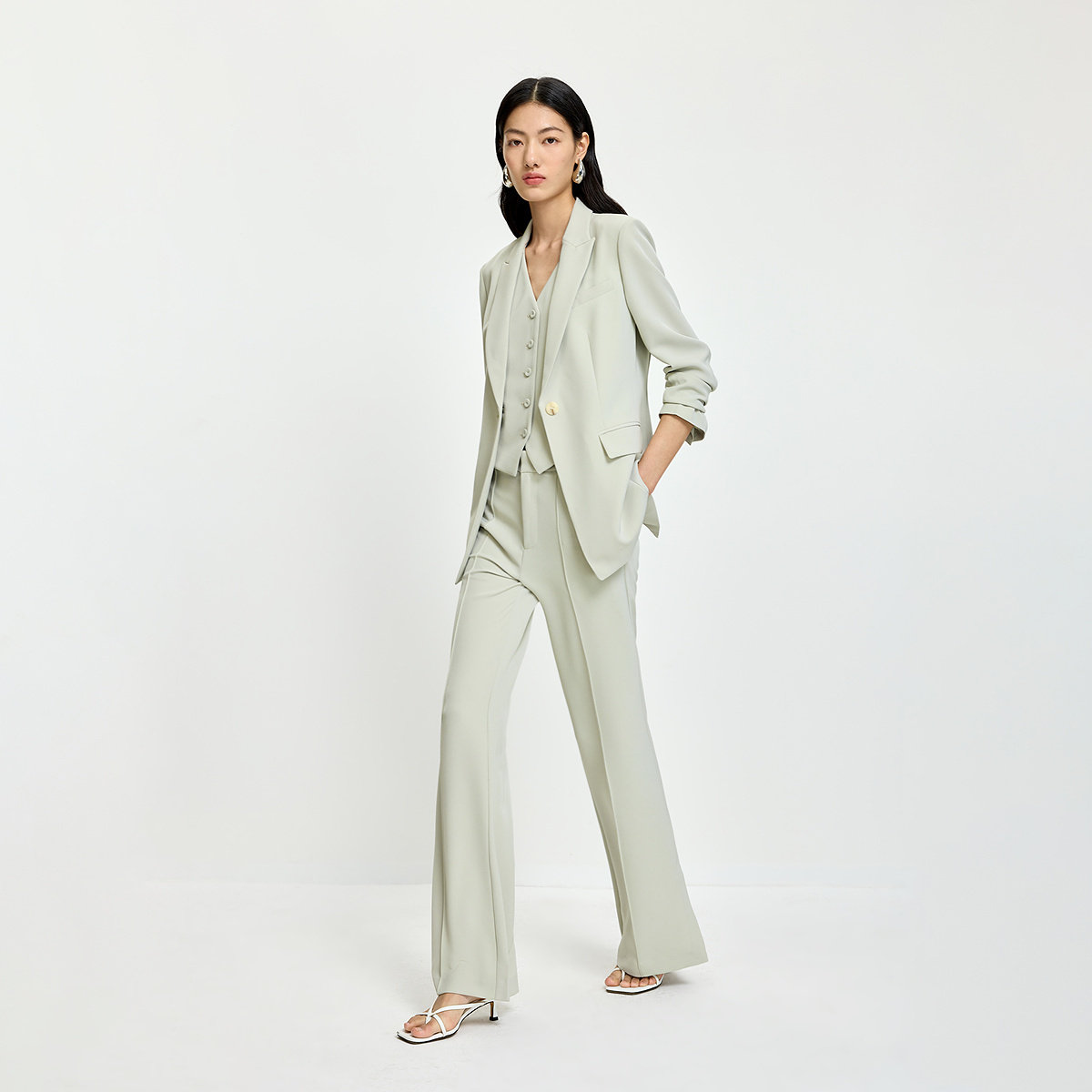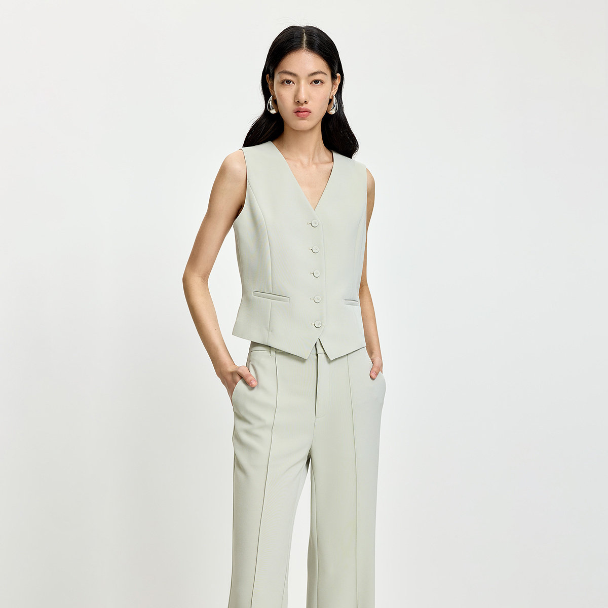 LILY2026夏季新款女装西装马甲背心,以松弛感设计诠释现代都市女性的简约美学。采用轻盈透气的浅色面料,搭配利落V领与无袖剪裁,既显颈部修长,又增添清爽夏日气息。宽松版型兼顾舒适与时尚,轻松打造随性而不失精致的通勤造型。无论是搭配衬衫、T恤或连衣裙,都能轻松驾驭职场与休闲场景,展现从容自信的穿搭态度。细节处注重质感与实用性,是夏日衣橱中不可或缺的百搭单品,完美融合简约、舒适与高级感,助力女性在日常中自在表达自我风格。