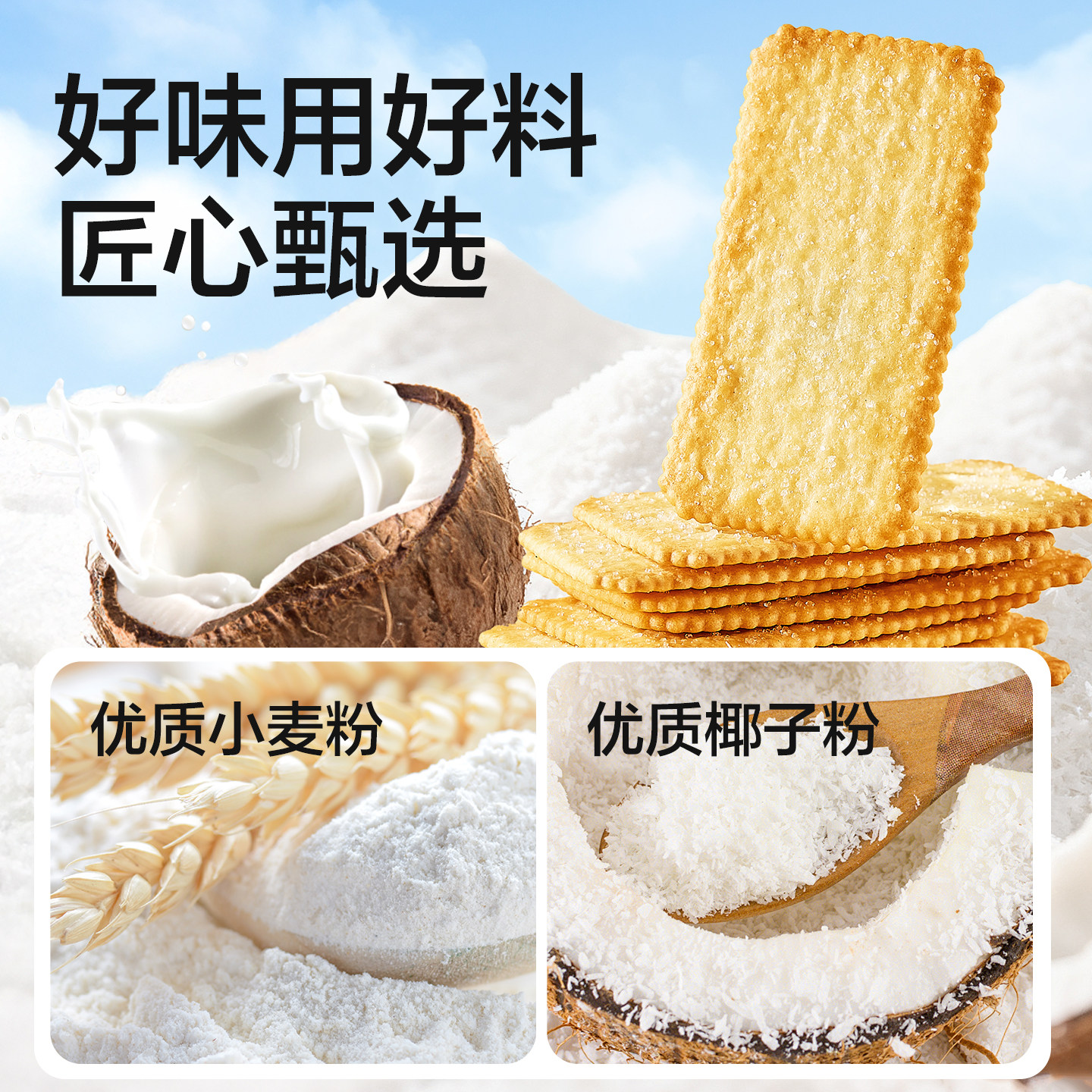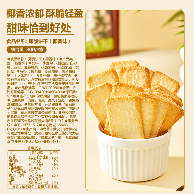 天猫良品铺子酥脆薄饼椰香味薄脆饼干早餐代餐零食休闲小吃独立小包装