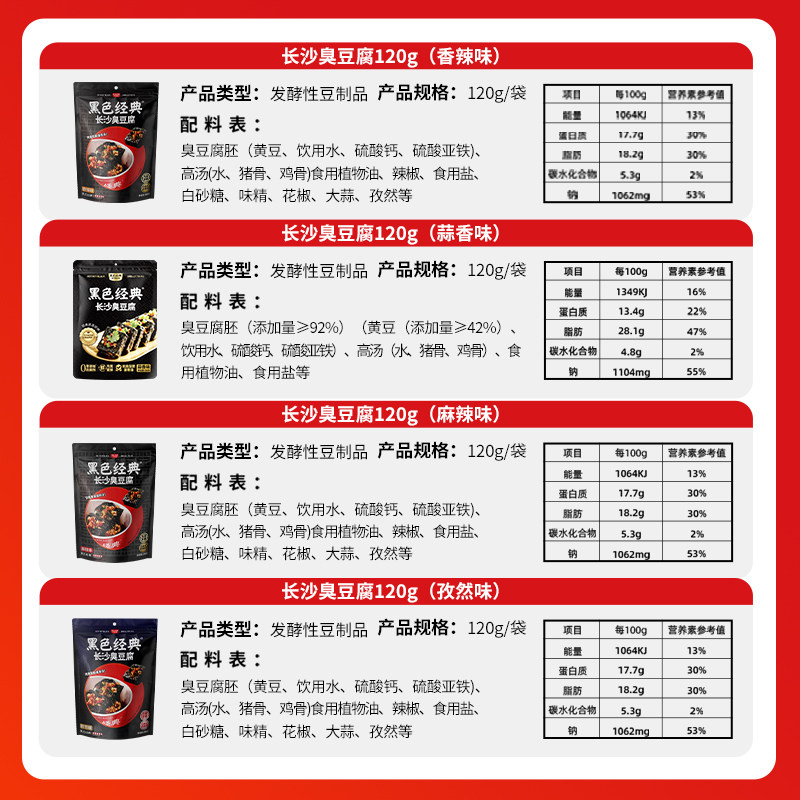 黑色经典长沙臭豆腐豆干,源自湖南地道风味,是备受喜爱的特色小吃。精选优质大豆,经传统工艺发酵制成,外皮黝黑酥脆,内里绵软多汁,散发独特“闻着臭、吃着香”的经典魅力。搭配秘制香辣酱料,口感层次丰富,辣而不燥,越嚼越香。即食包装方便携带,无论是追剧、出游还是办公室解馋,都是理想休闲零食。作为湖南特产代表,黑色经典臭豆腐豆干不仅传承百年匠心,更融合现代工艺,锁住地道风味,让人在一口之间感受长沙街头的烟火气息,是馈赠亲友或自享的香辣美味之选。