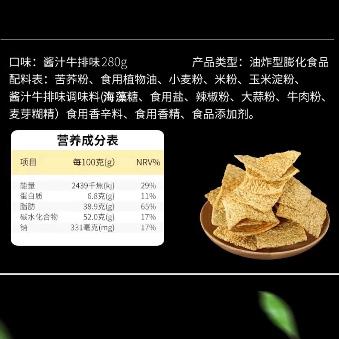 天猫食谷坊苦荞片牛肉味膨化酥脆锅巴健康荞麦办公室解馋休闲零食