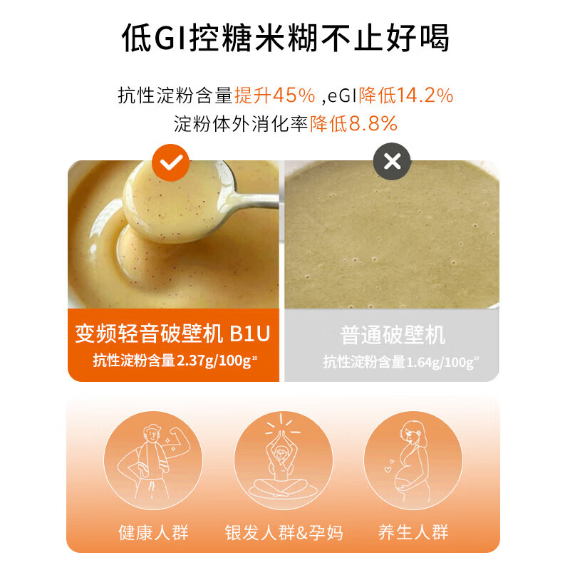 九阳变频轻音破壁机家用豆浆机低音五谷杂粮辅食无渣搅拌料理机b1